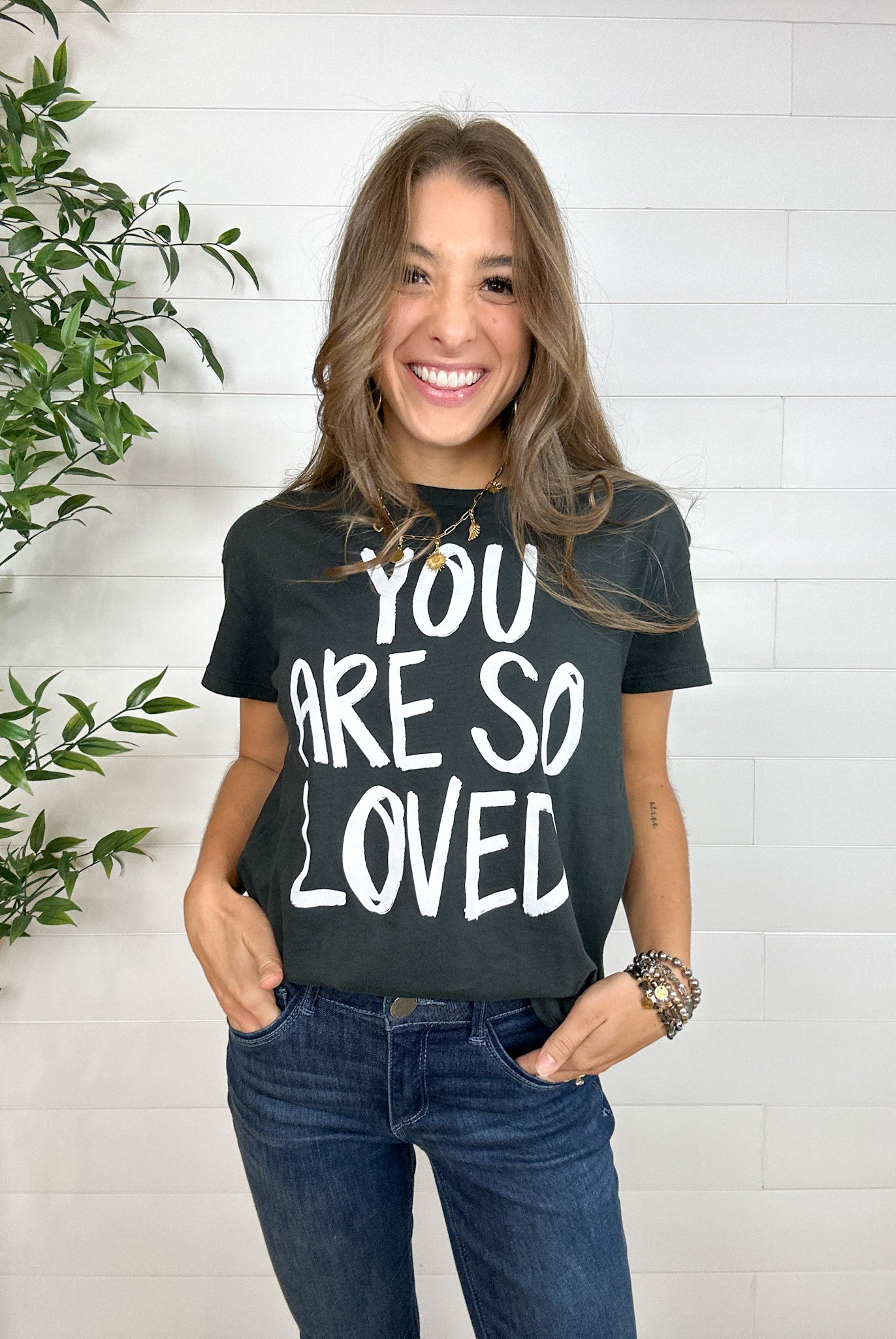 Our famous denim will lift you up, hold you in, and make you forget you’re wearing jeans. Our tops and jewelry are limited-run, must-have closet staples. And every piece of clothing is lined with our trademark - “You Are So Loved!”