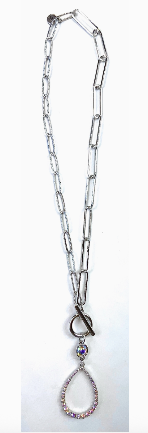 This touch of bling on this pendant makes it a great addition to almost any outfit! The  paperclip chain adds a bit of edge with the sparkle keeps things fun and feminine.