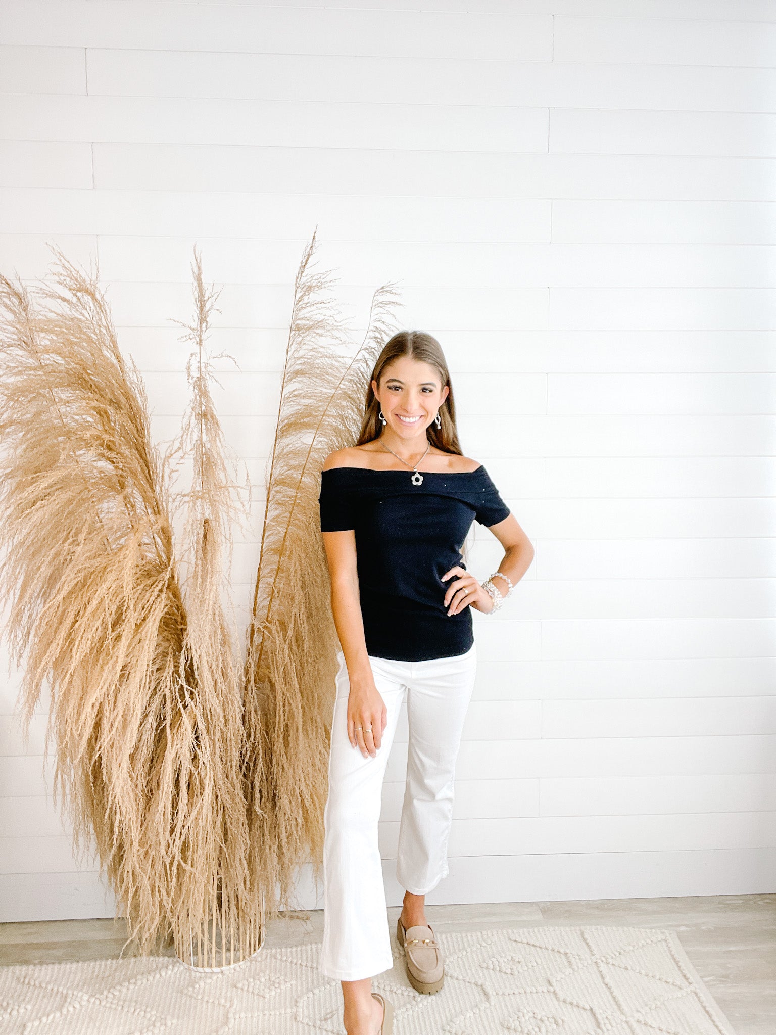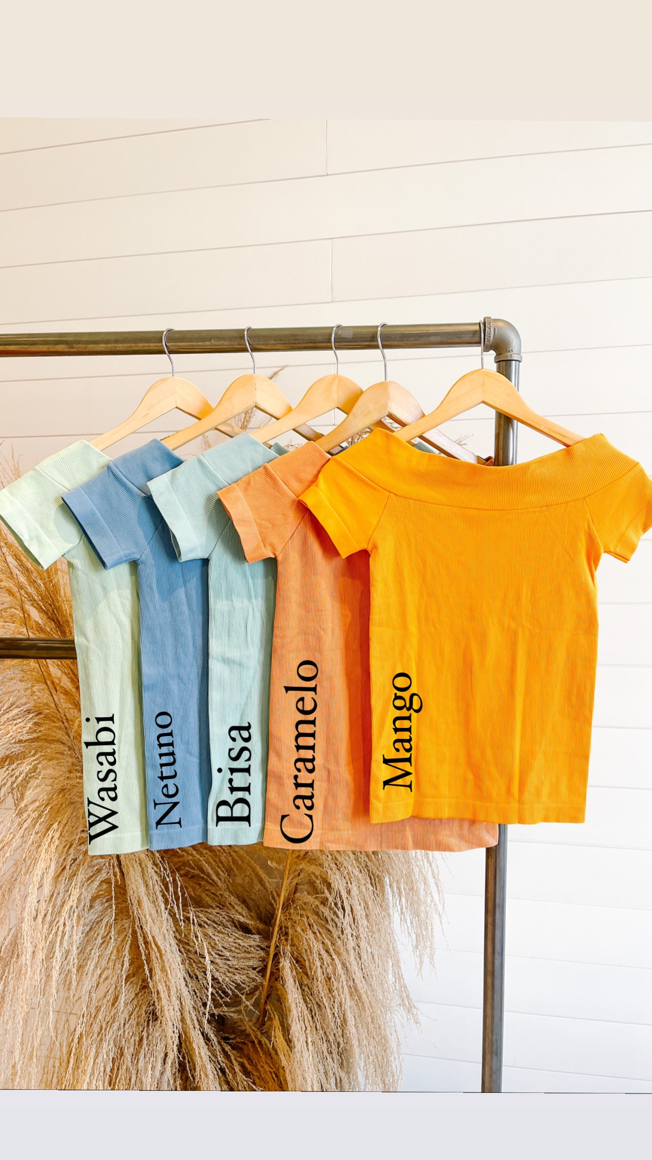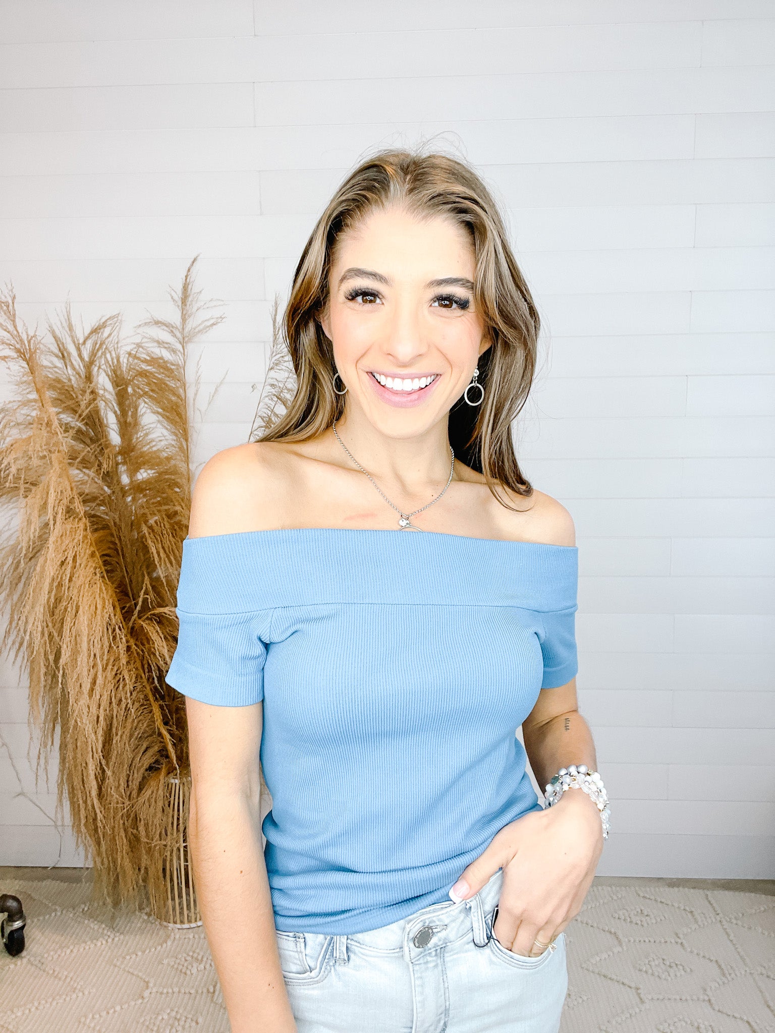 One size fits 00-16! This darling off the shoulder top is a year-round must have to wear on it's own, or layered under your favorite jacket!