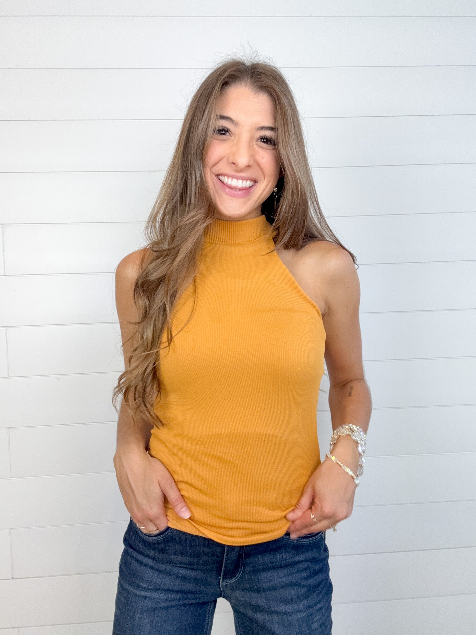 This halter-style ribbed mock neck is a total outfit-maker—with a built-in shelf bra for comfy, confident wear (no layering necessary). The ribbed texture adds polish, and the ultra-stretchy fit makes it a go-to for all-day style.
