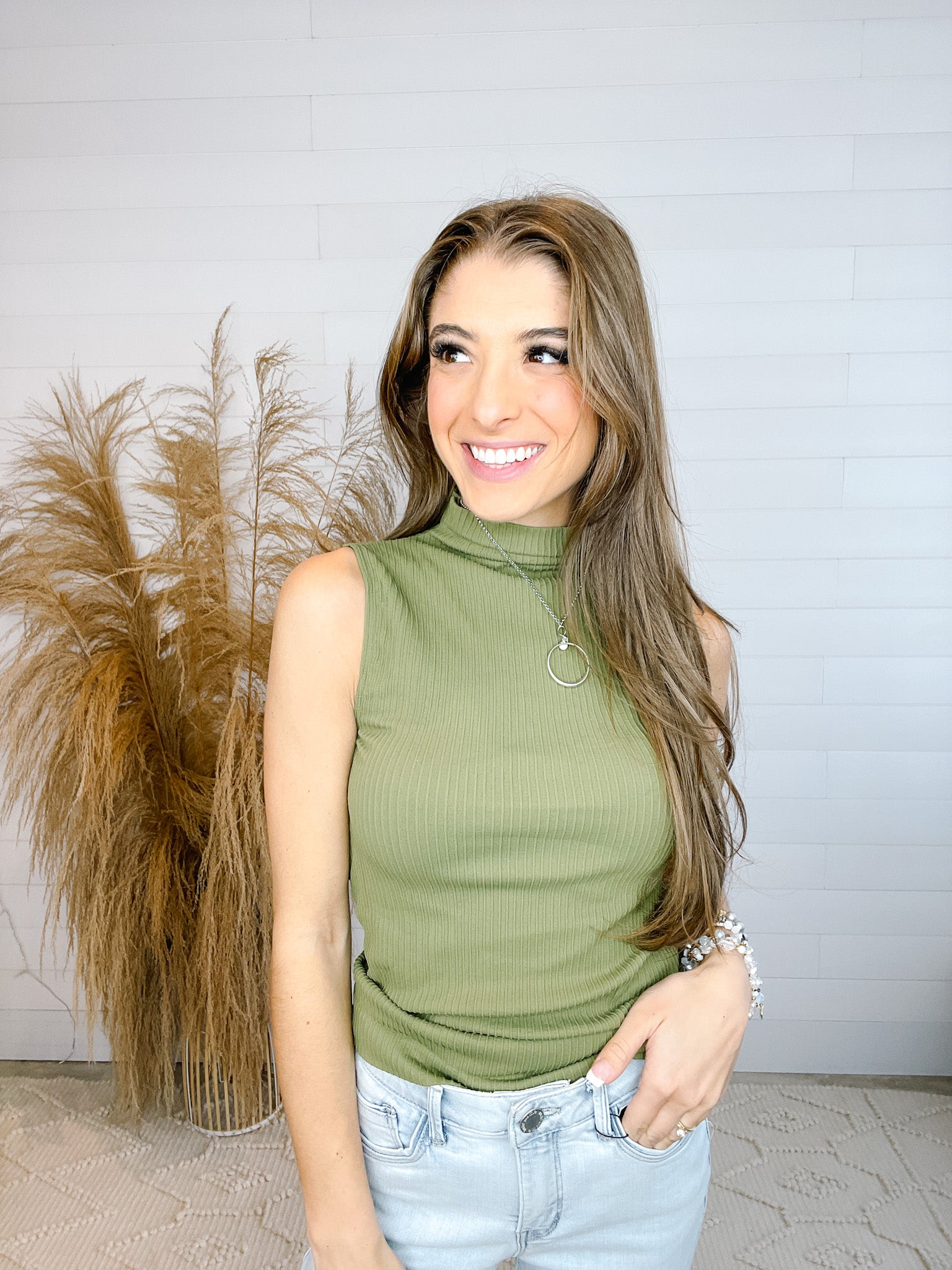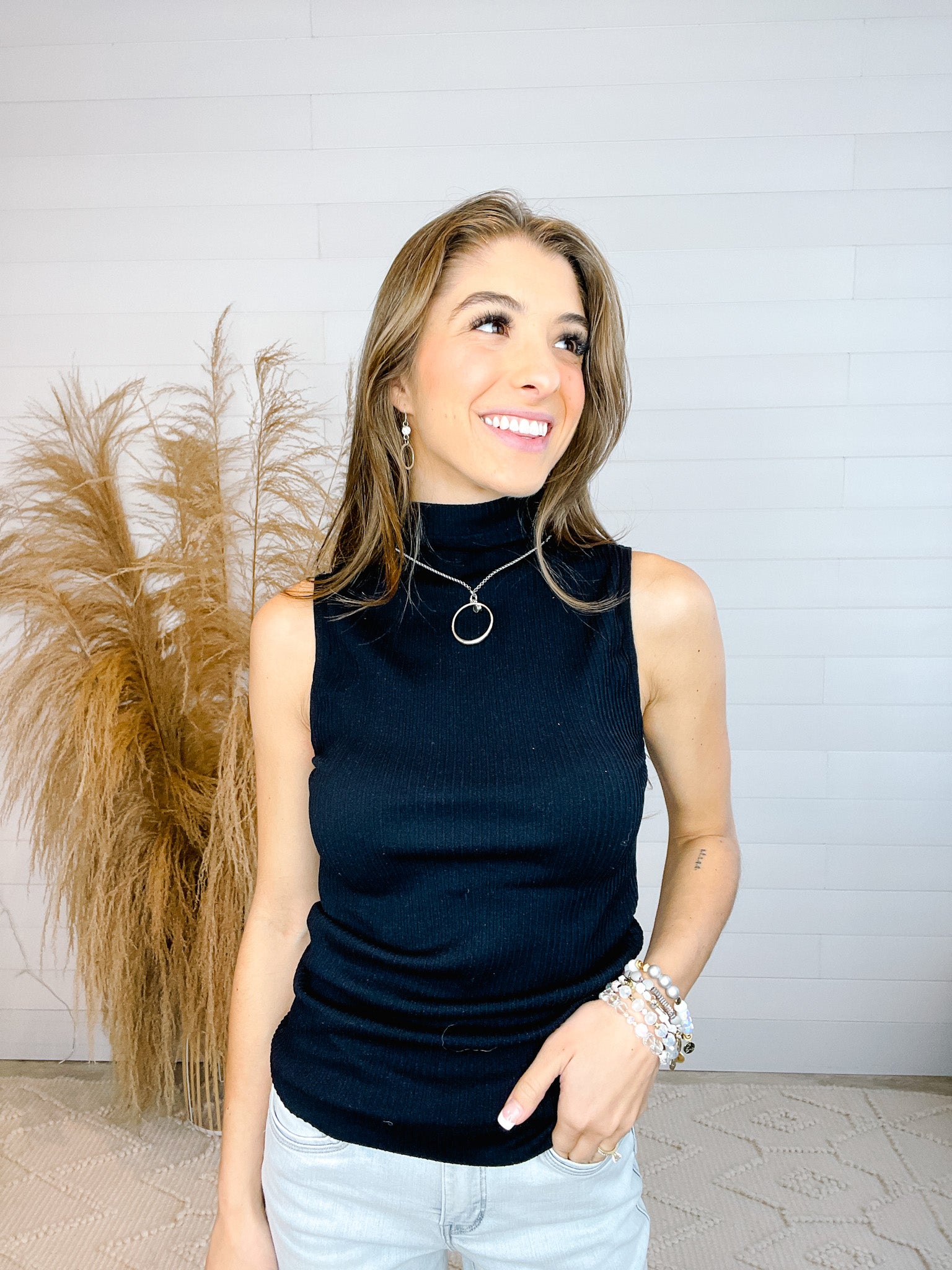 Ribbed Sleeveless Mock Neck Top