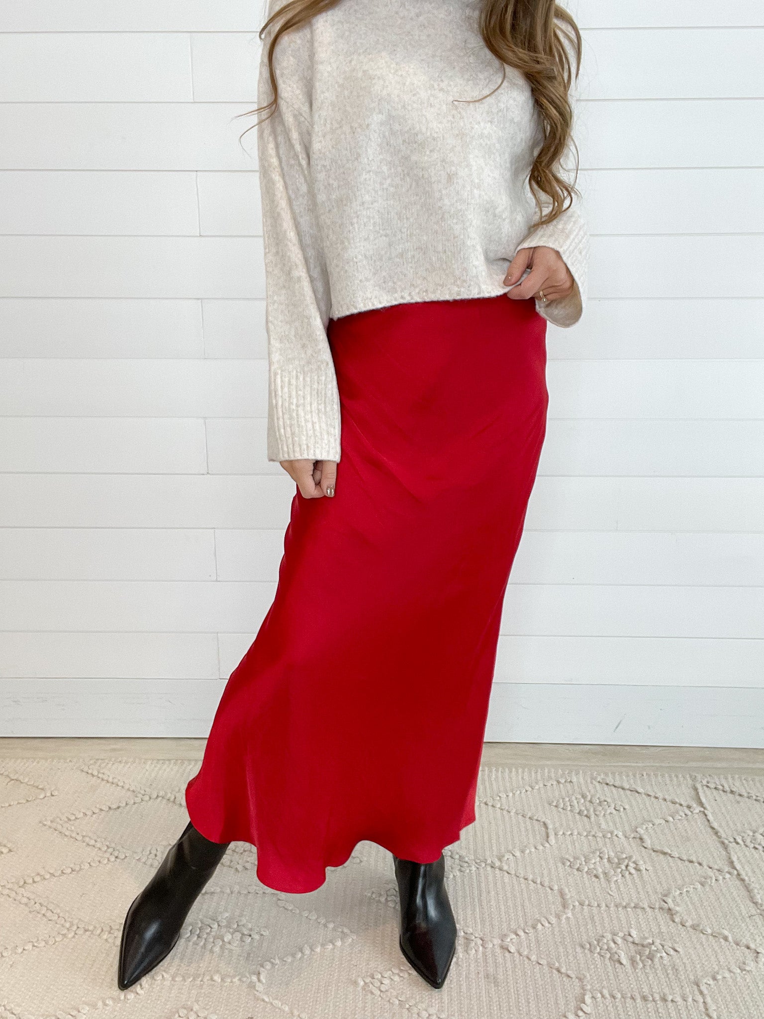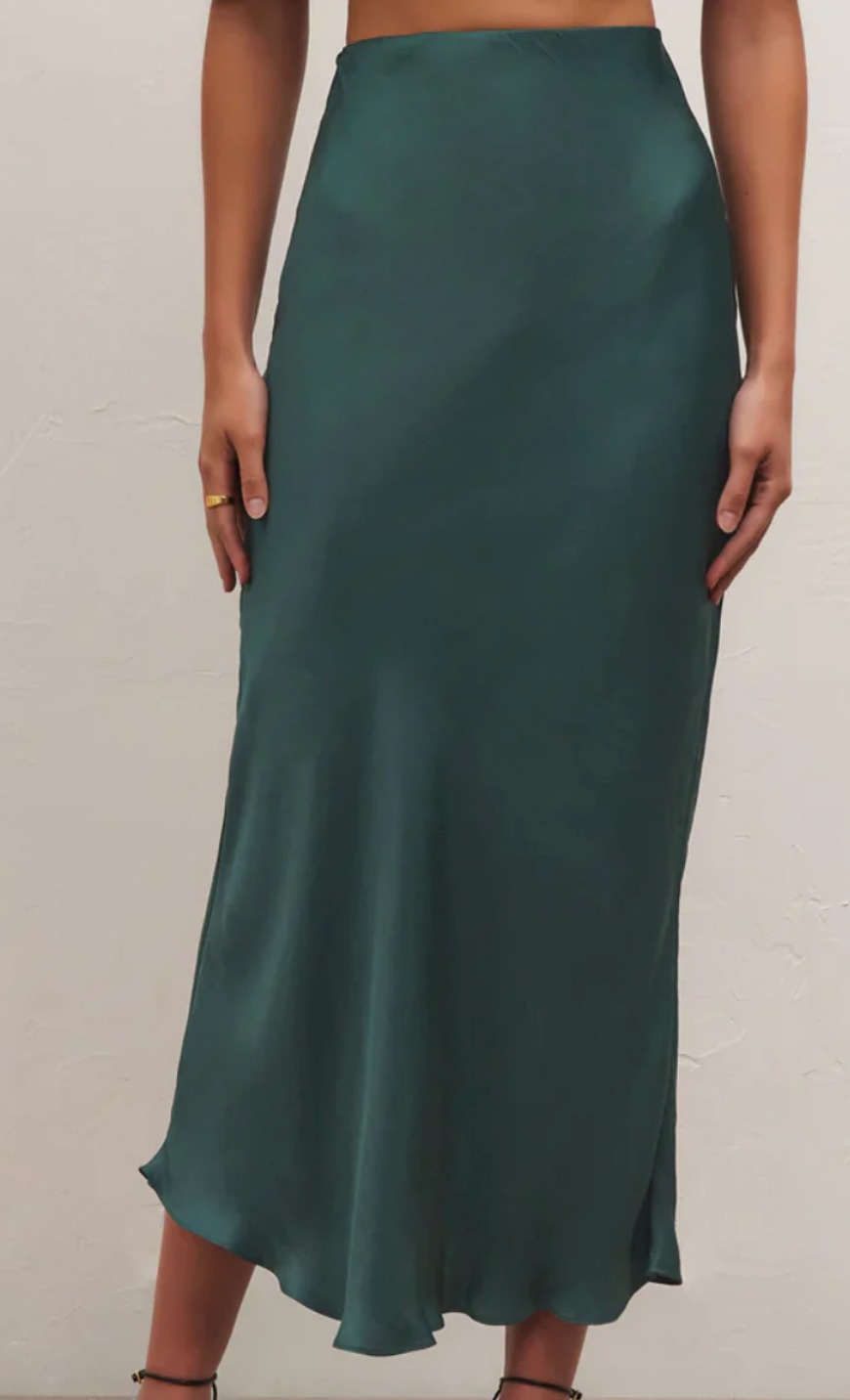 Experience the luxurious feel of this fully lined skirt, designed with a sleek and elegant look. Crafted from our lustrous Poly Sheen fabric and cut on the bias, it drapes beautifully, offering effortless style for any special occasion. The pull-on elastic waist ensures comfort, making it both chic and easy to wear.