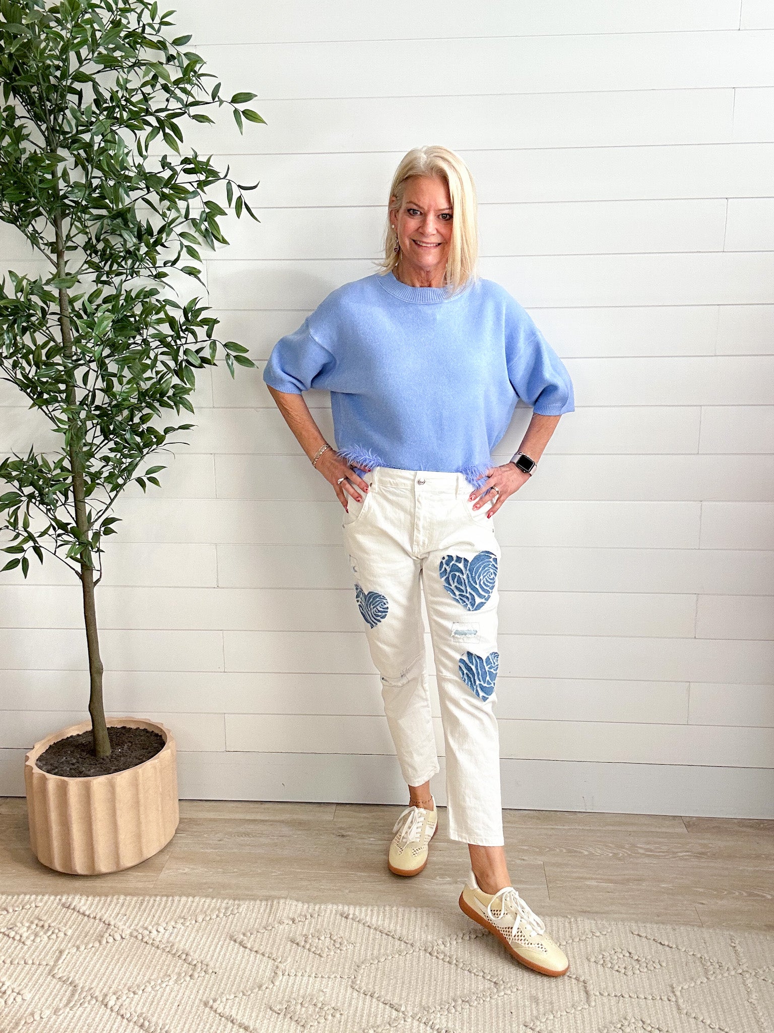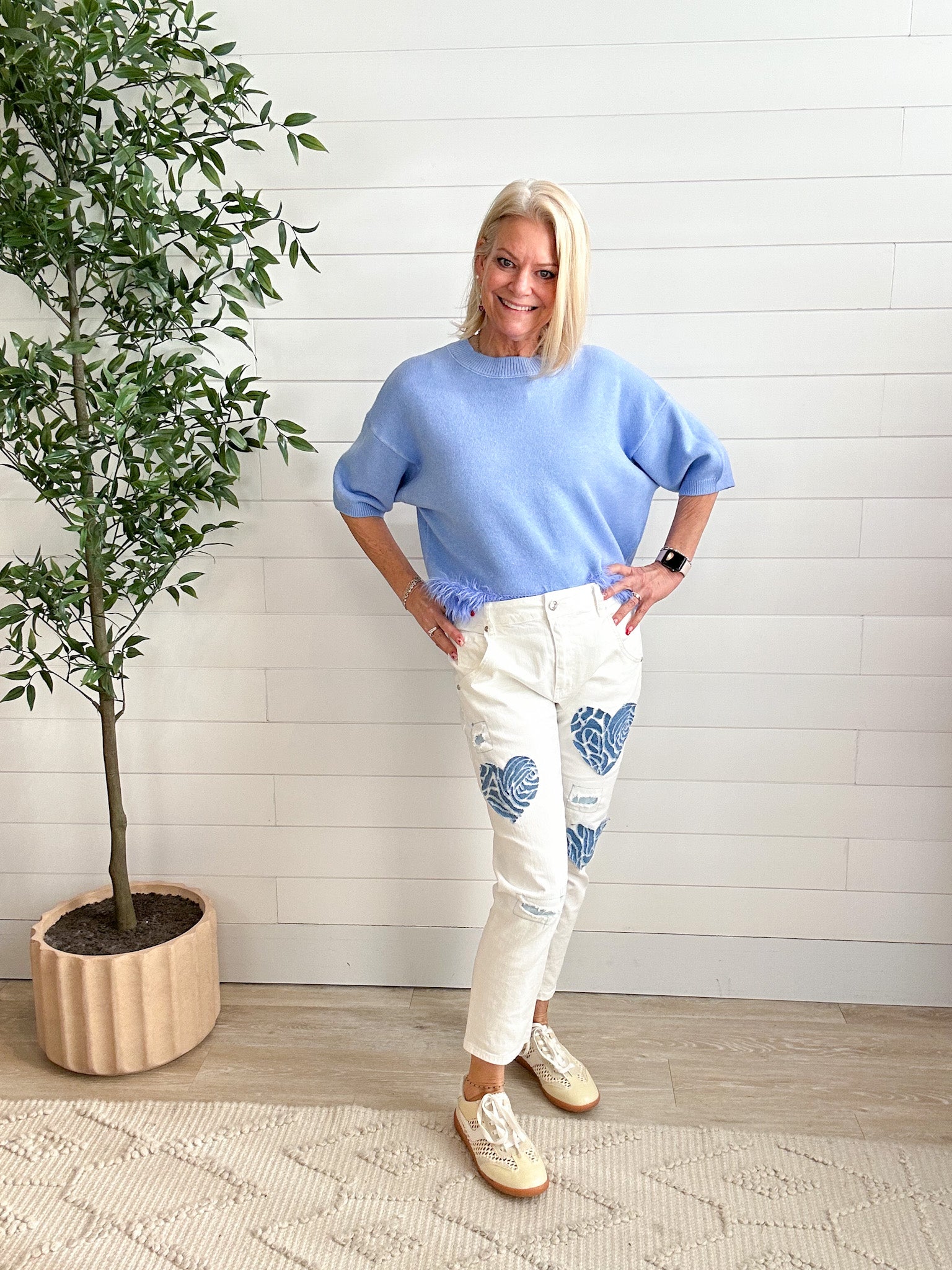 Let these be the star with a simple knit or tee, or lean into the romance with a soft blouse and sneakers or flats for an effortlessly chic look. 💙