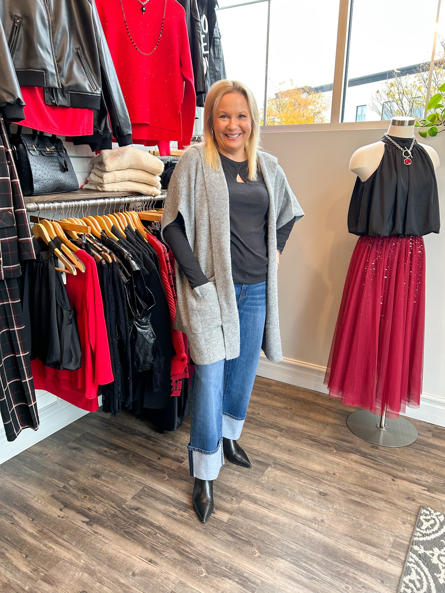 Toss it over a slim-fit top and jeans for chic casual days, or layer it with boots and statement jewelry for an effortlessly elevated look.