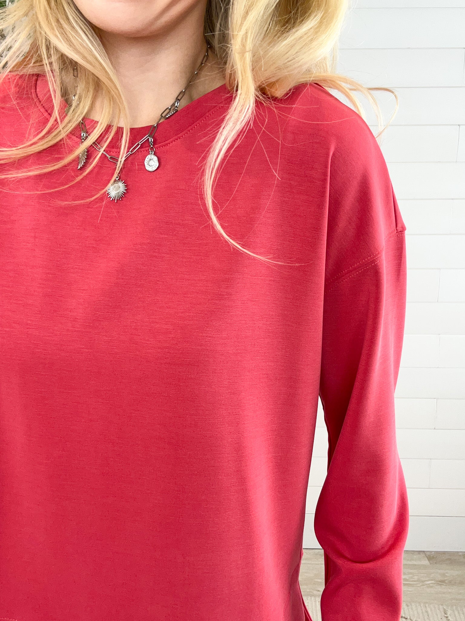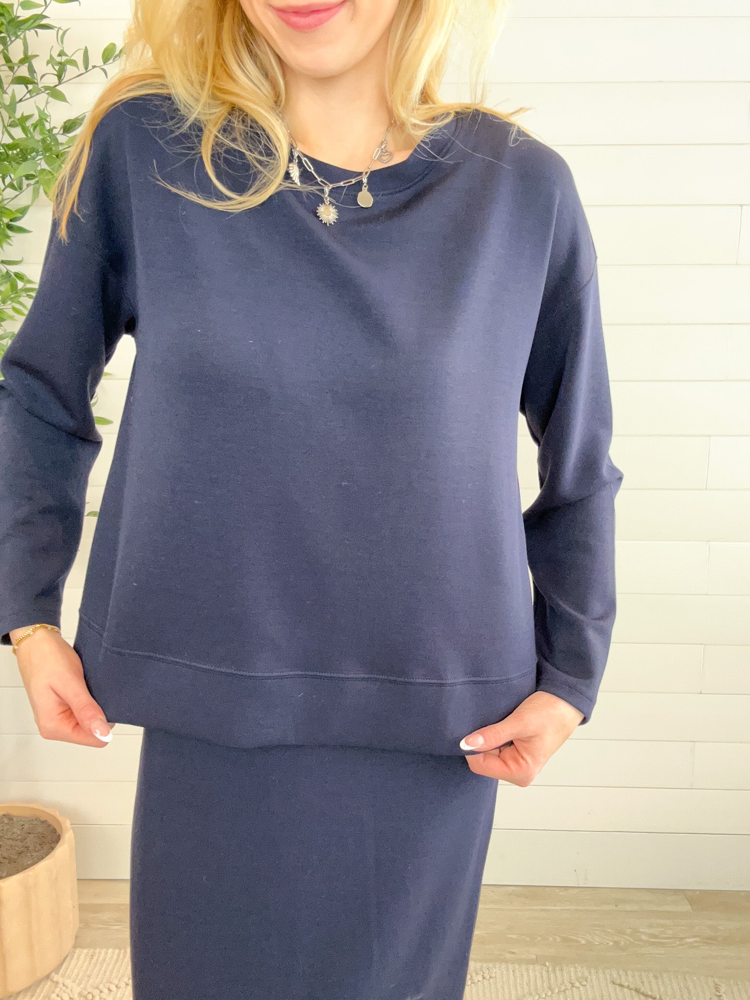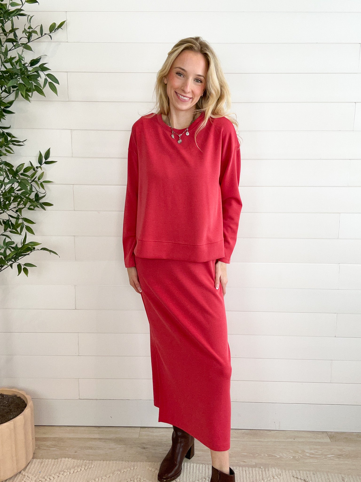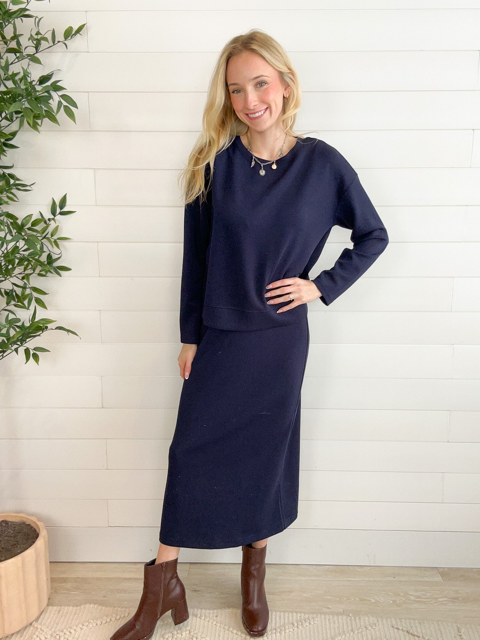 The Tank Dress & Long Sleeve Top Set is the definition of effortless versatility. This ultra-soft two-piece combo features a relaxed-fit long sleeve top layered over a sleek, sleeveless tank dress for a modern, laid-back look. Wear them together for easy styling or mix and match for even more outfit options. The dress includes a side slit for comfortable movement, while the stretchy, buttery fabric keeps everything feeling amazing all day long — perfect for lounging, errands, or casual plans.
