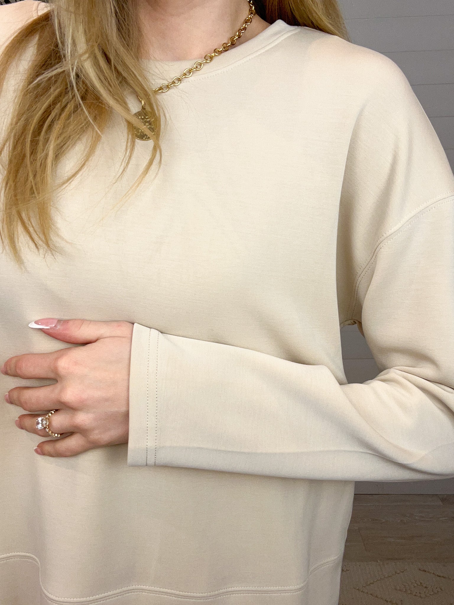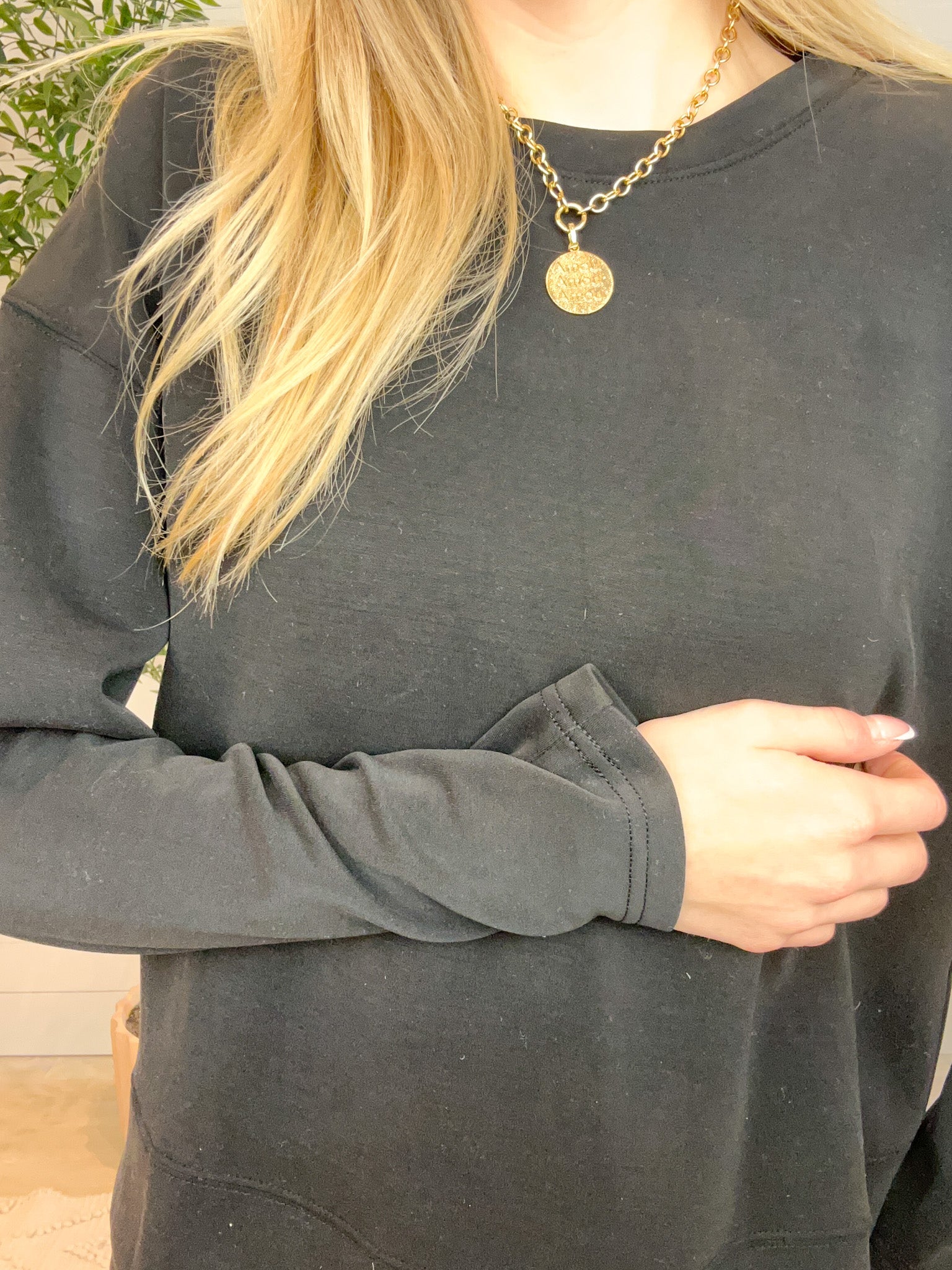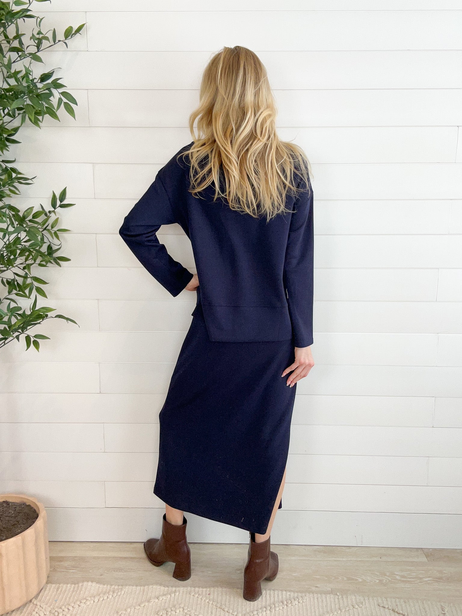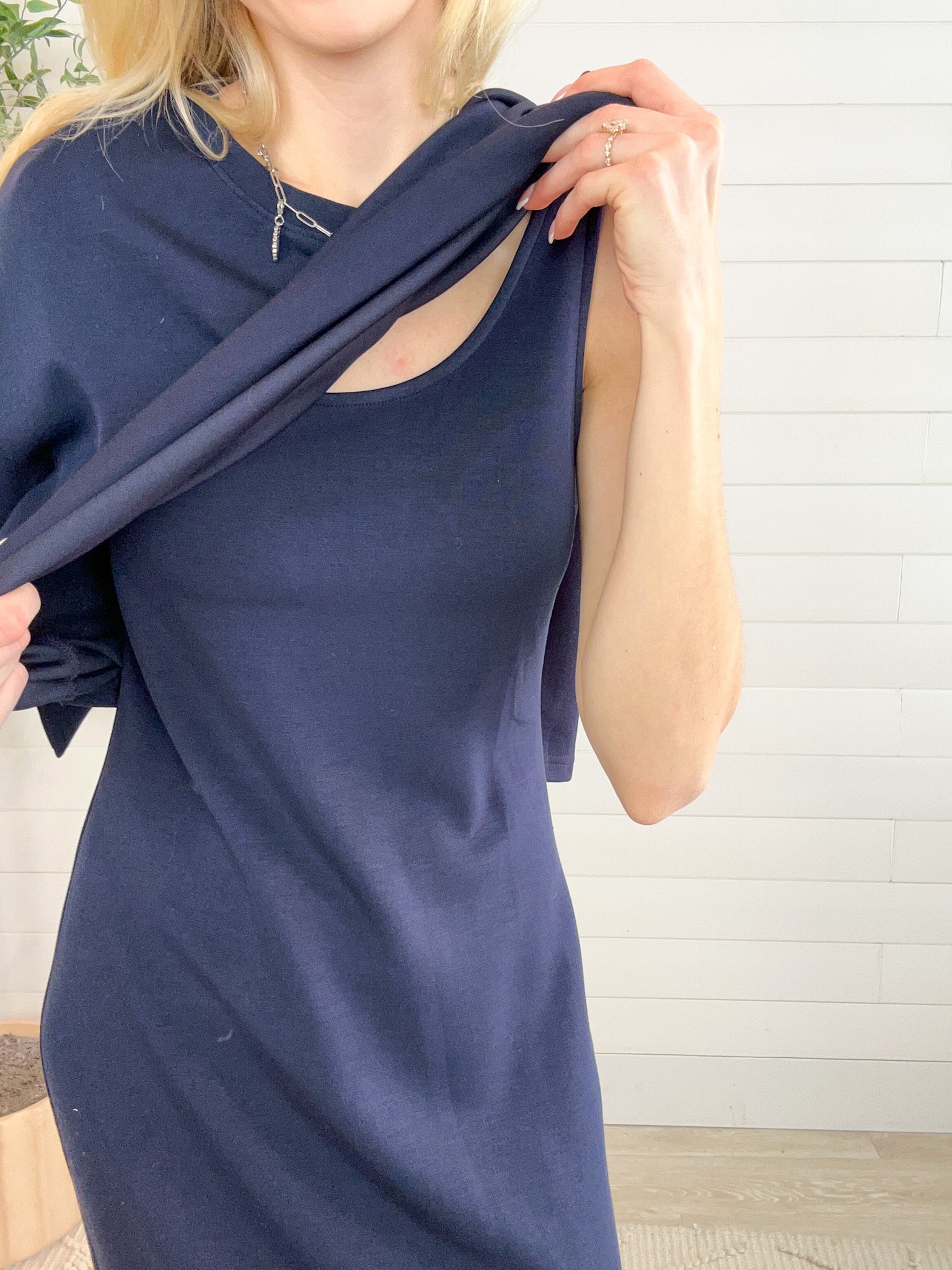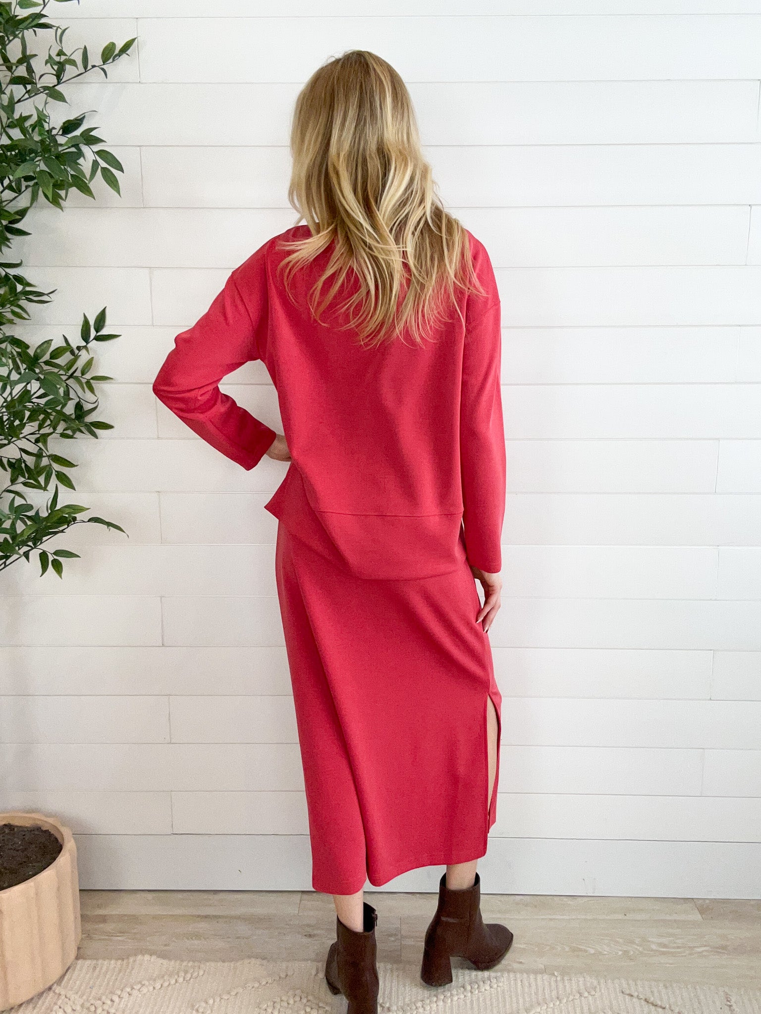 The Tank Dress & Long Sleeve Top Set is the definition of effortless versatility. This ultra-soft two-piece combo features a relaxed-fit long sleeve top layered over a sleek, sleeveless tank dress for a modern, laid-back look. Wear them together for easy styling or mix and match for even more outfit options. The dress includes a side slit for comfortable movement, while the stretchy, buttery fabric keeps everything feeling amazing all day long — perfect for lounging, errands, or casual plans.