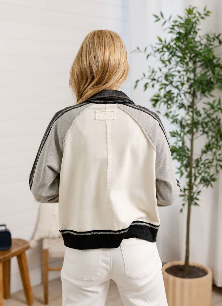 The Exposed Seam Colorblock Raglan Jacket is the perfect throw-on layer when you want comfort and style. Designed with a bold colorblock layout and clean raglan sleeves, this jacket features visible outstitch detailing that gives it a modern, slightly edgy finish. The zip-front closure and side pockets keep it practical, while the soft cotton-blend fabric makes it easy to wear all day. Relaxed, versatile, and effortlessly cool — this one’s a closet workhorse.