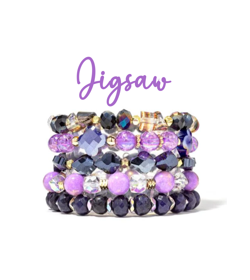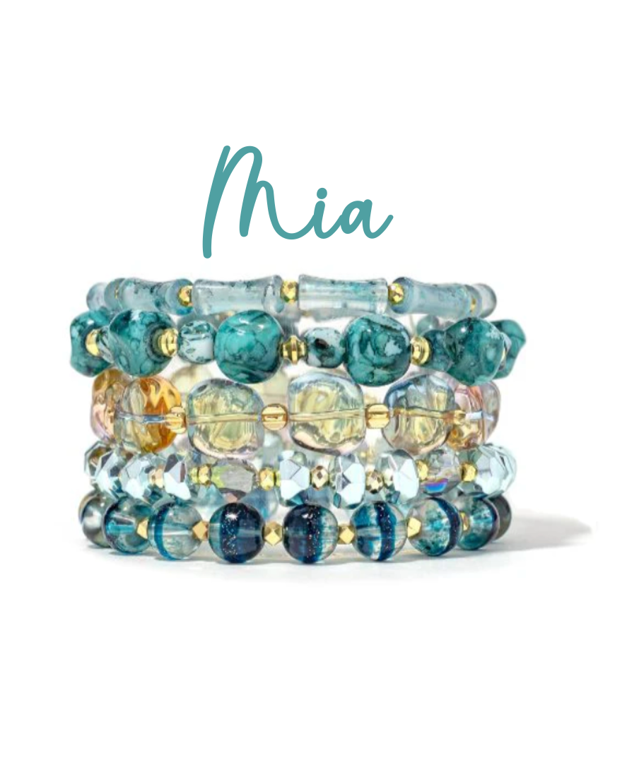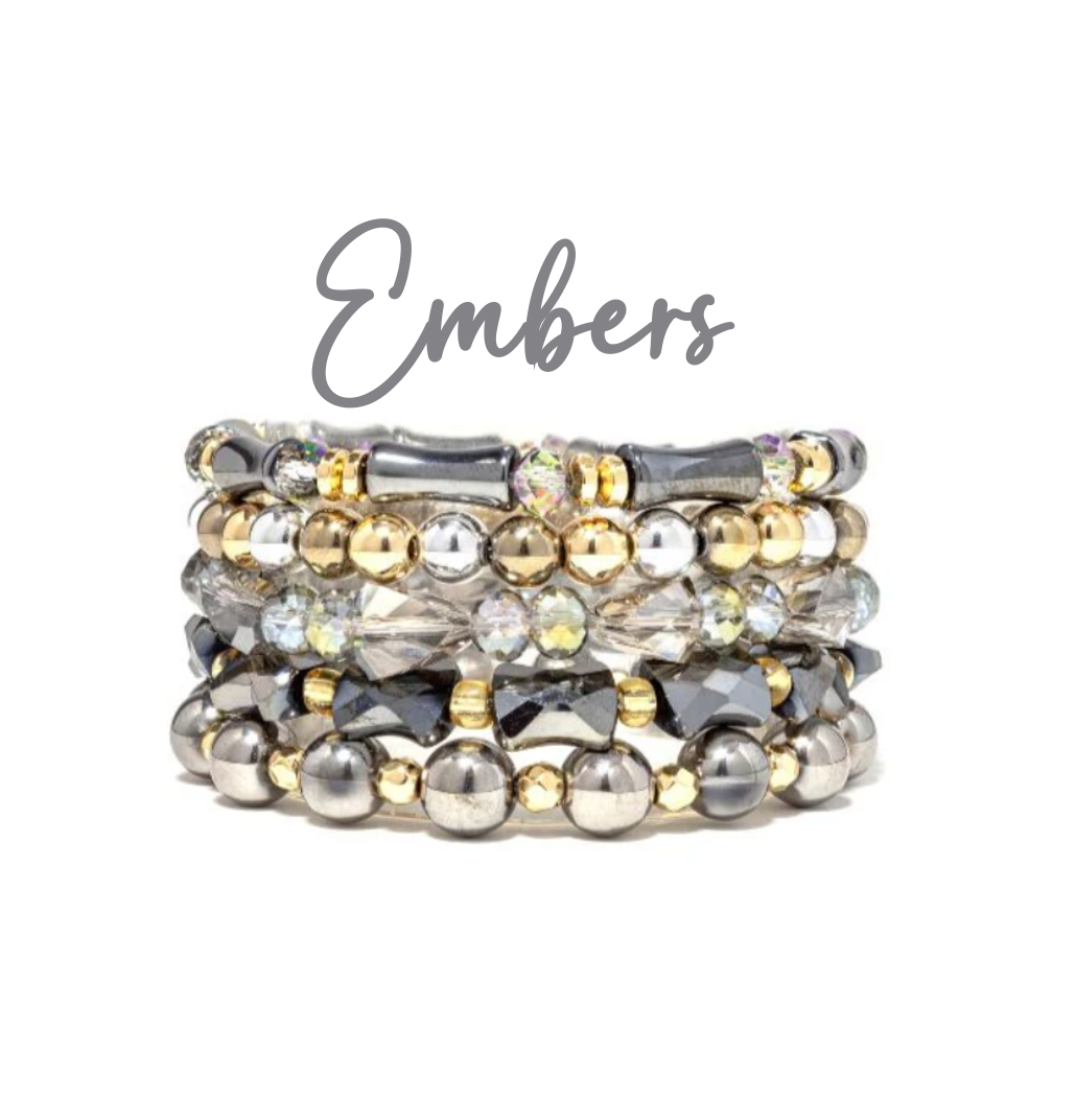 These darling stacks are super easy to mix and match, or wear as their original set. Each set comes with the 5 bracelets pictured, which are stretchy and fit most.