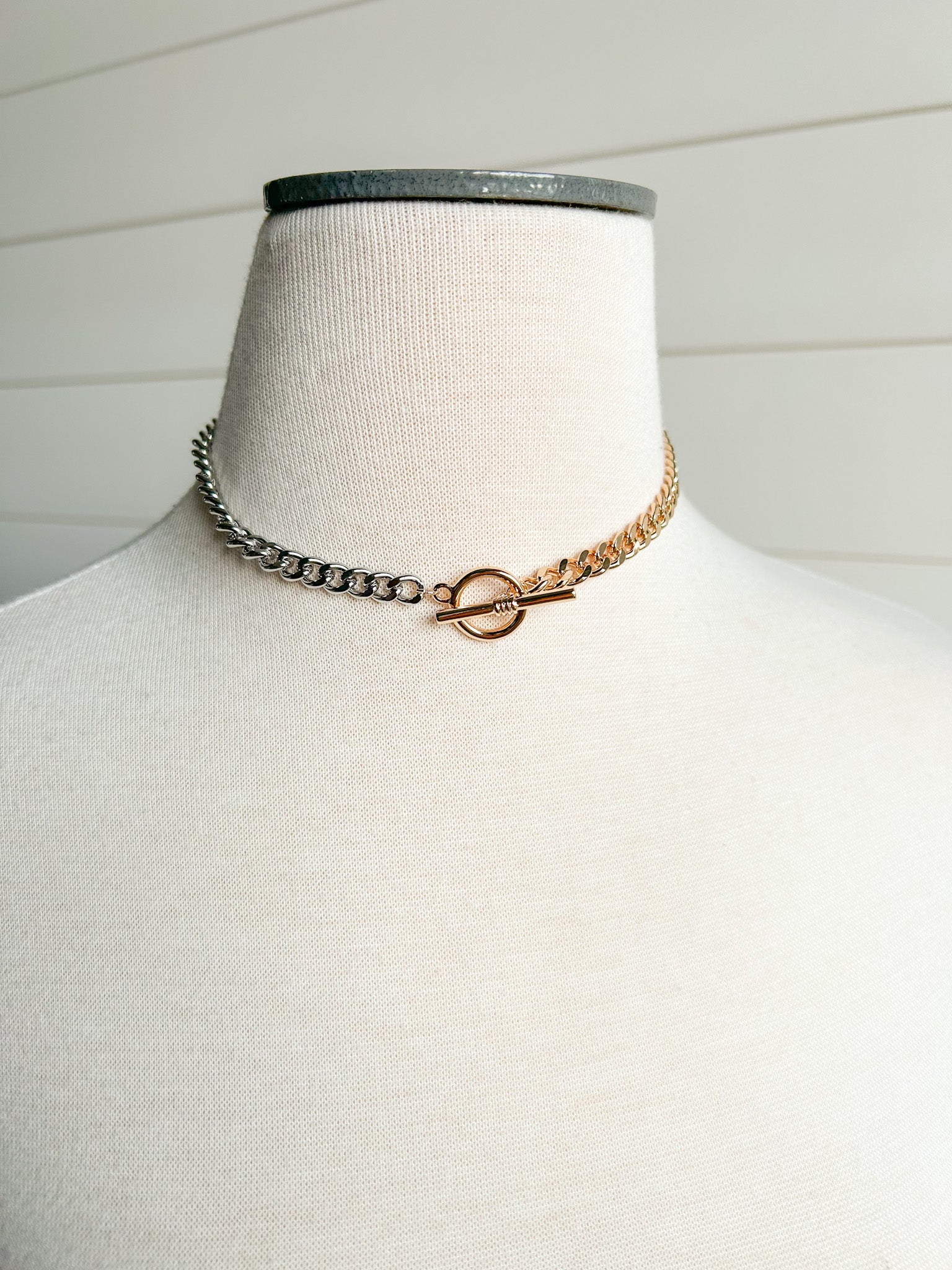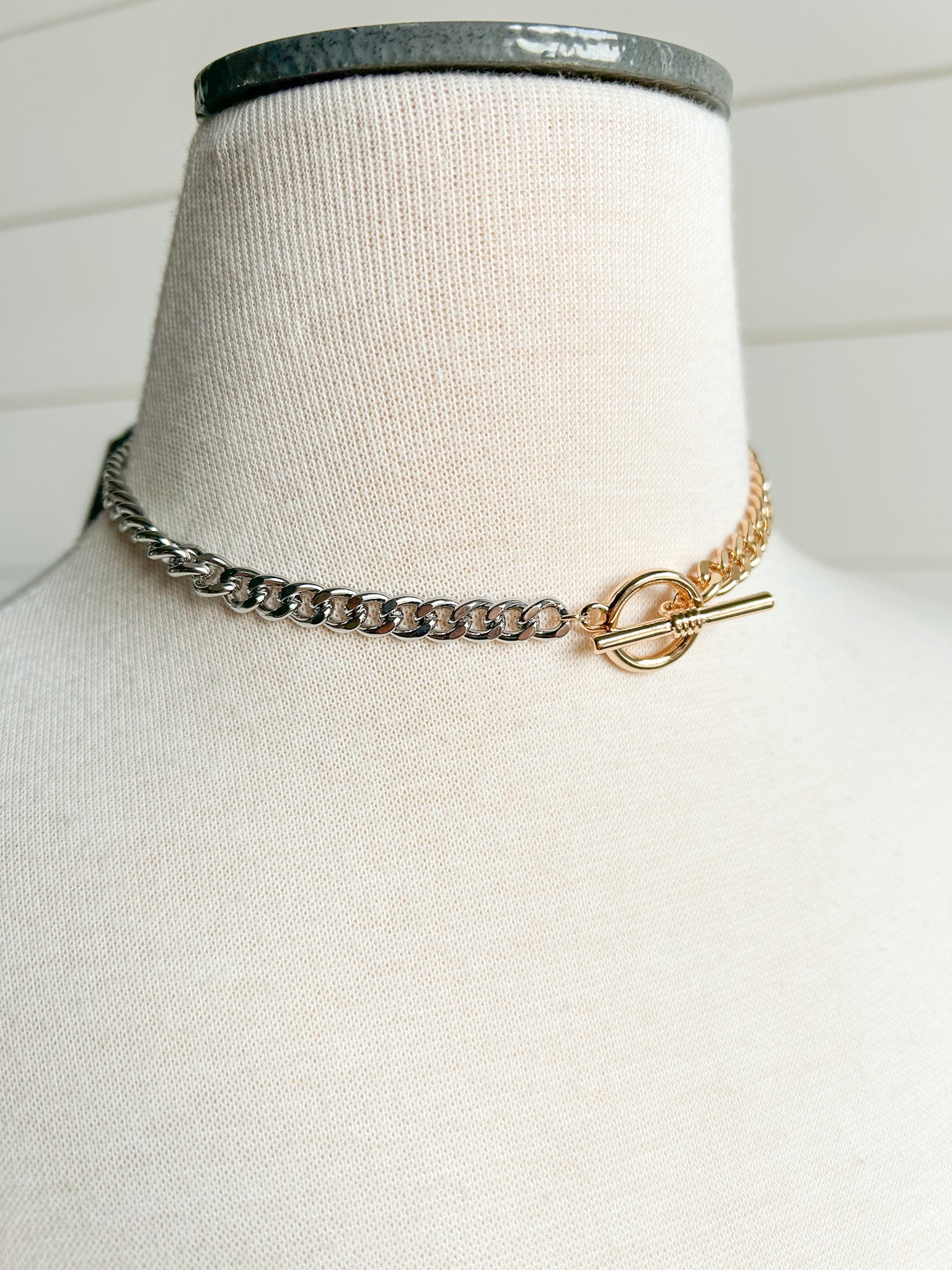 Metal curb chain linked toggle closure Length: 14 1/4" + Toggle closure