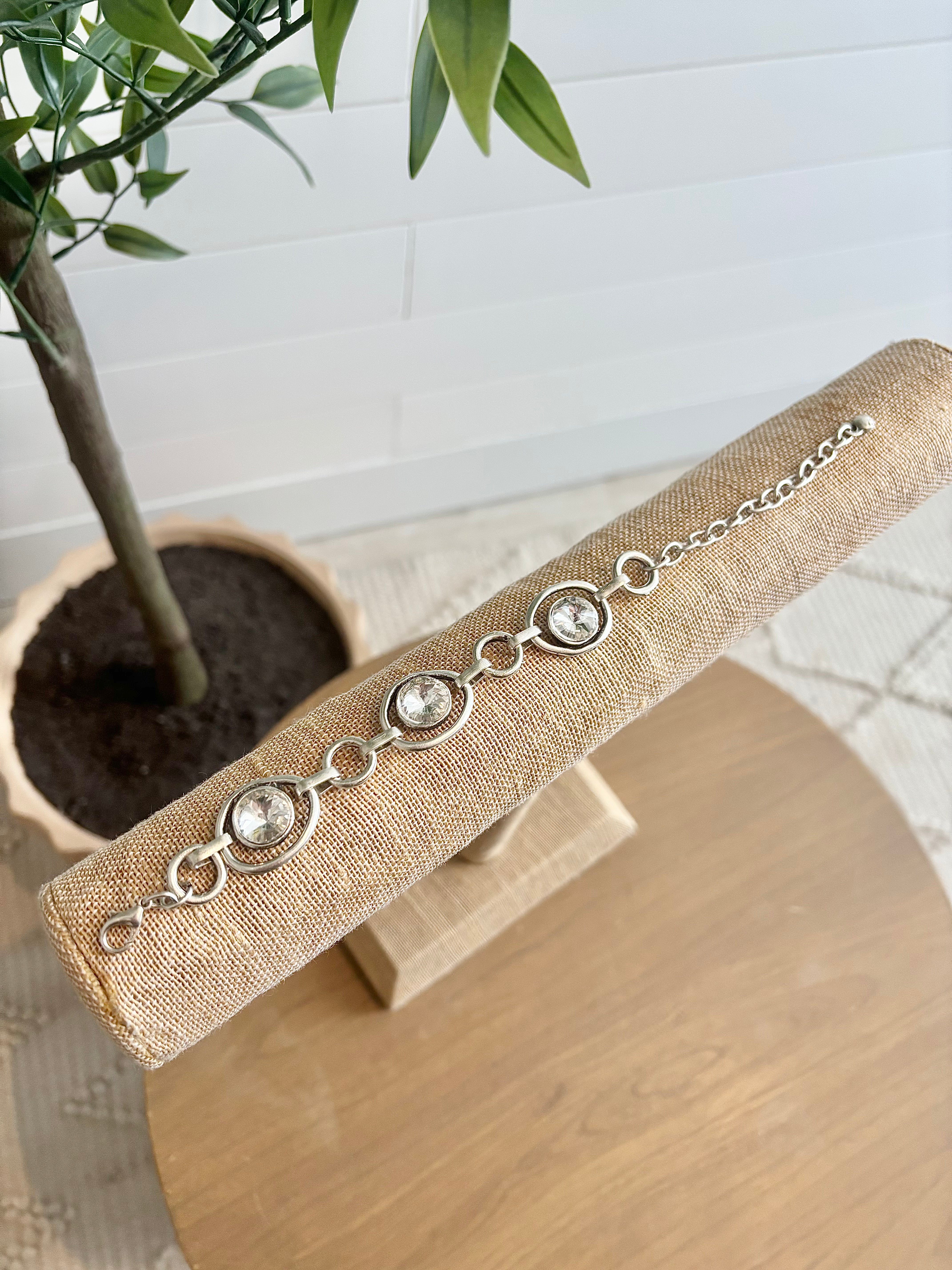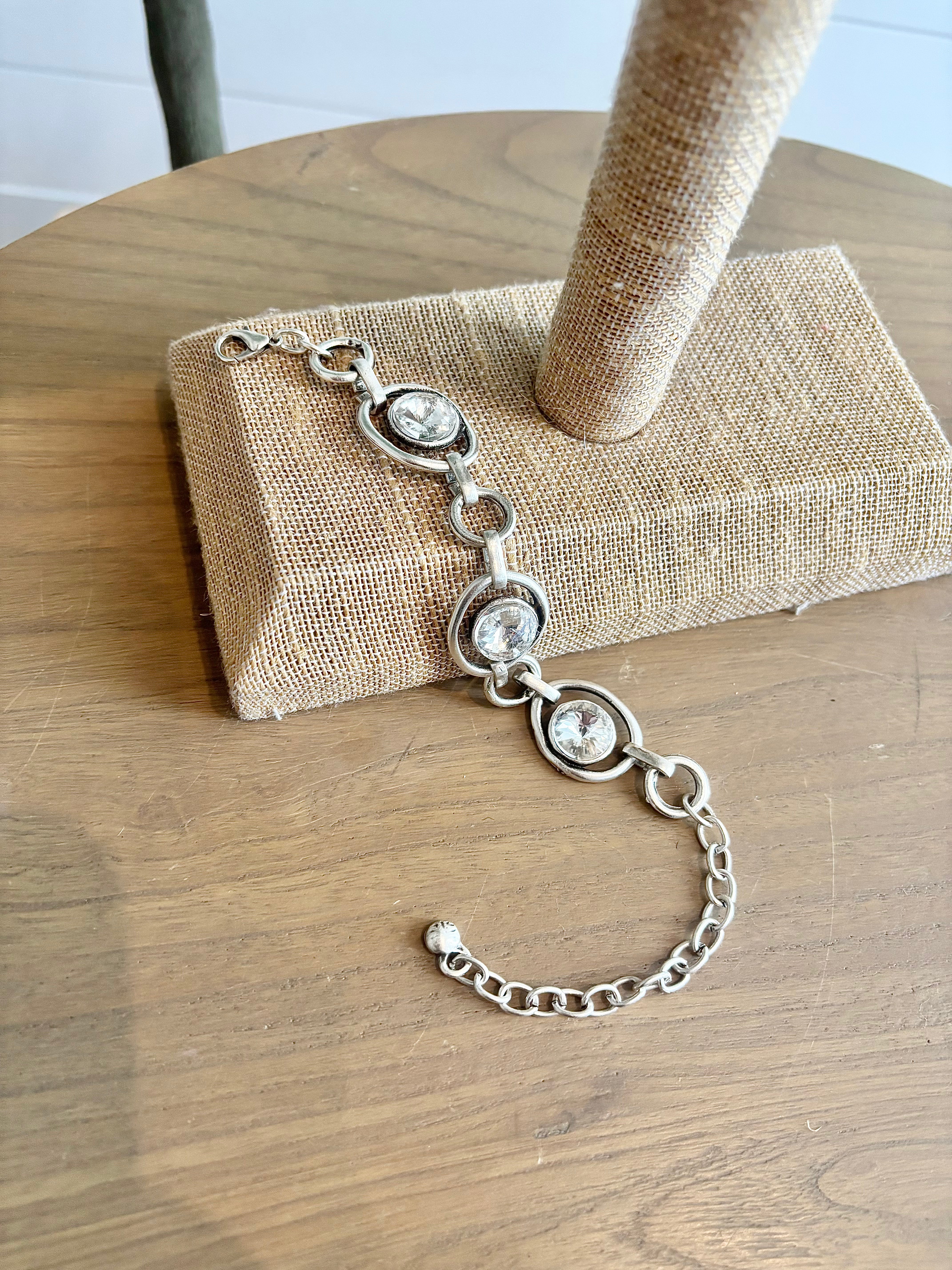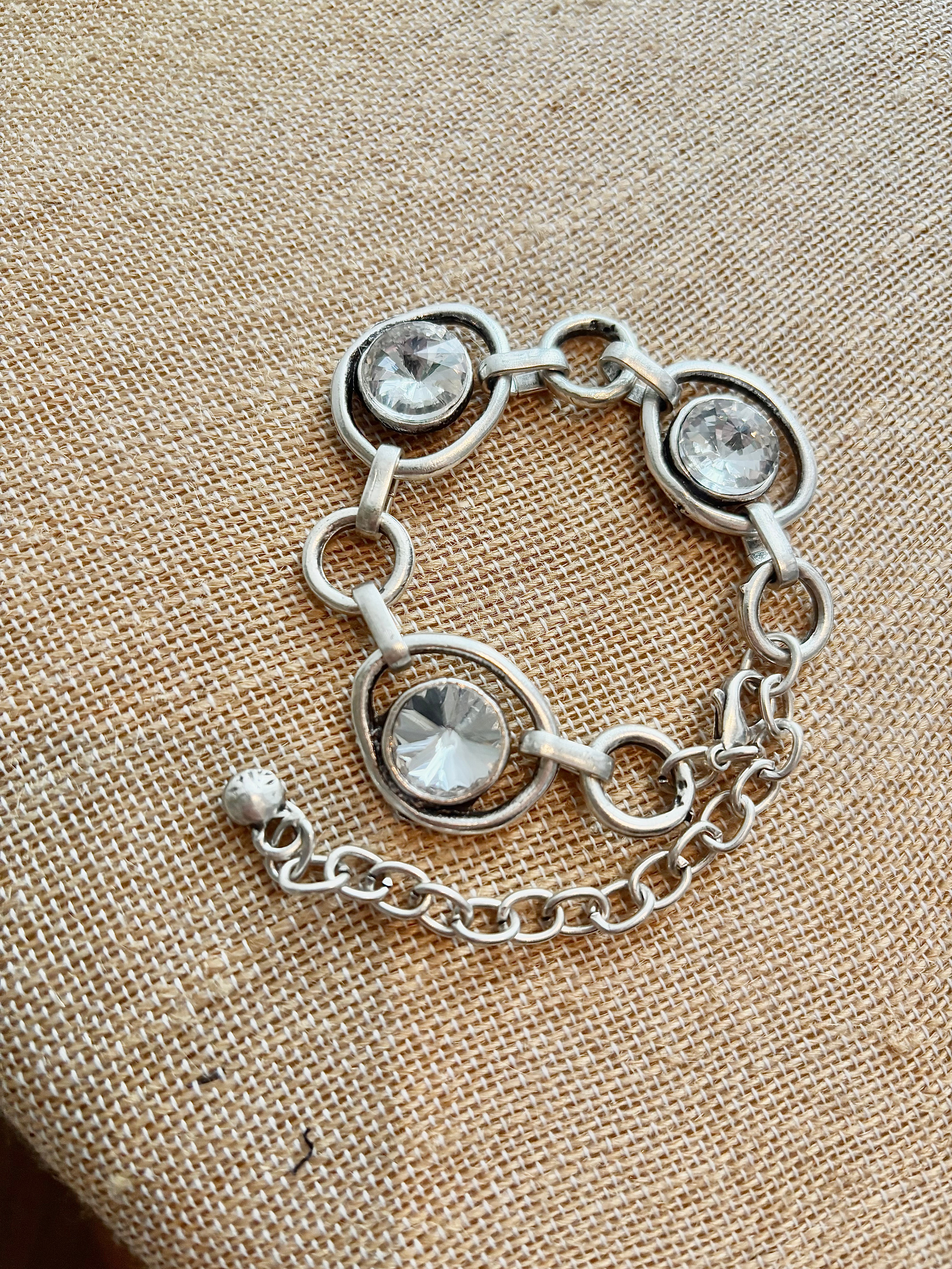 Antique Silver & Clear Stone Bracelet