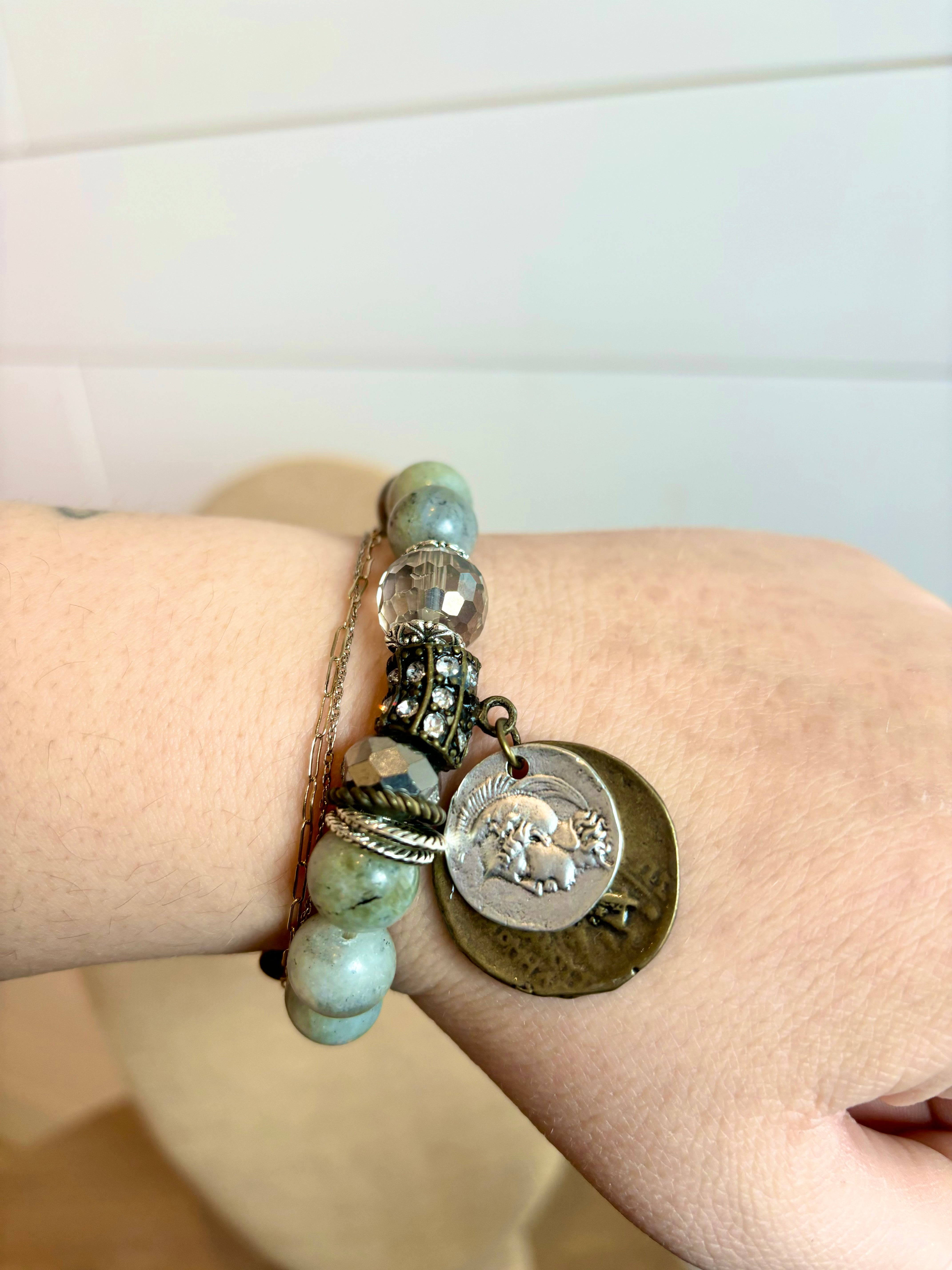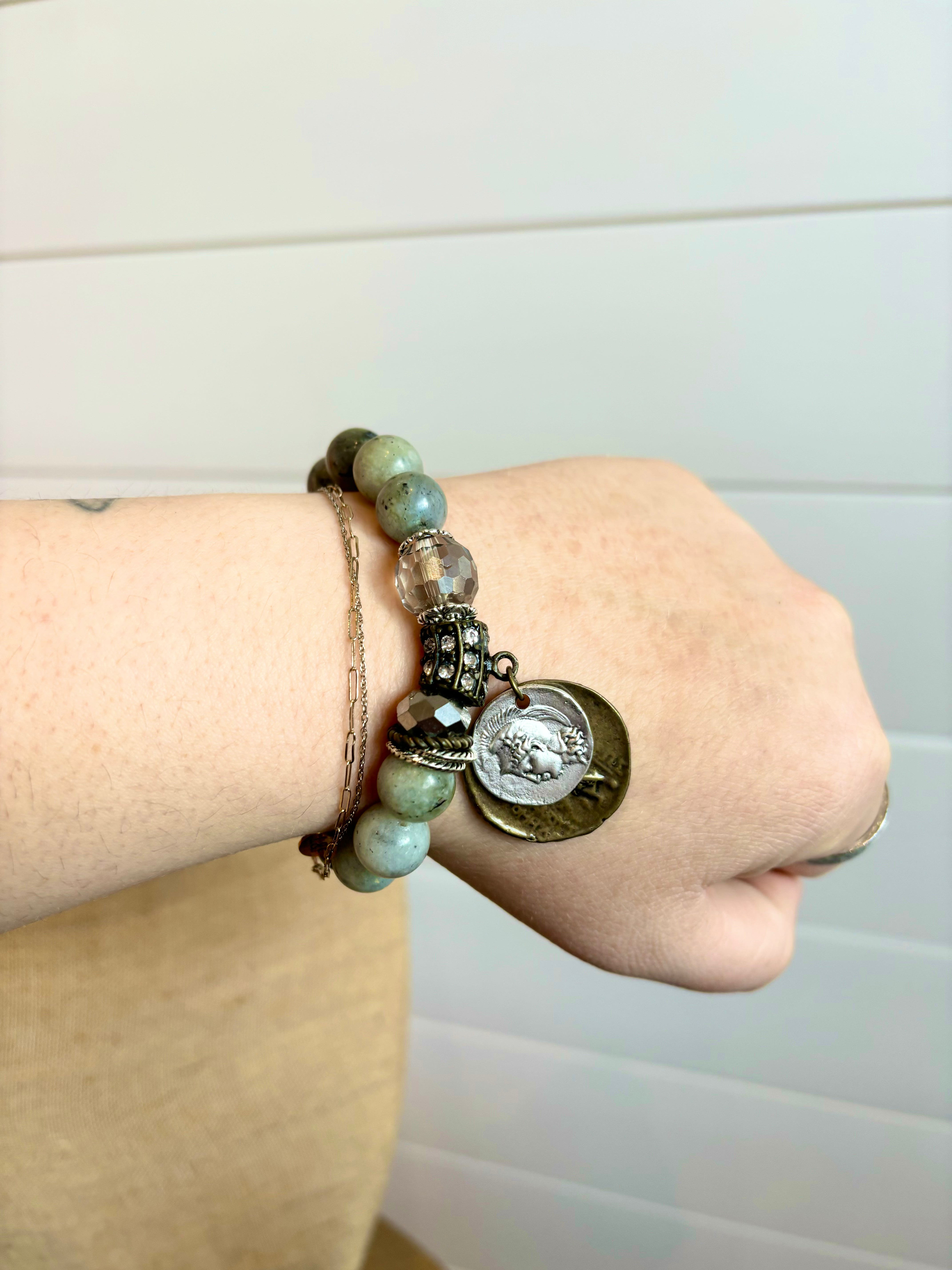 Bold Single Beaded Stretch Bracelet W/Coins Dangle