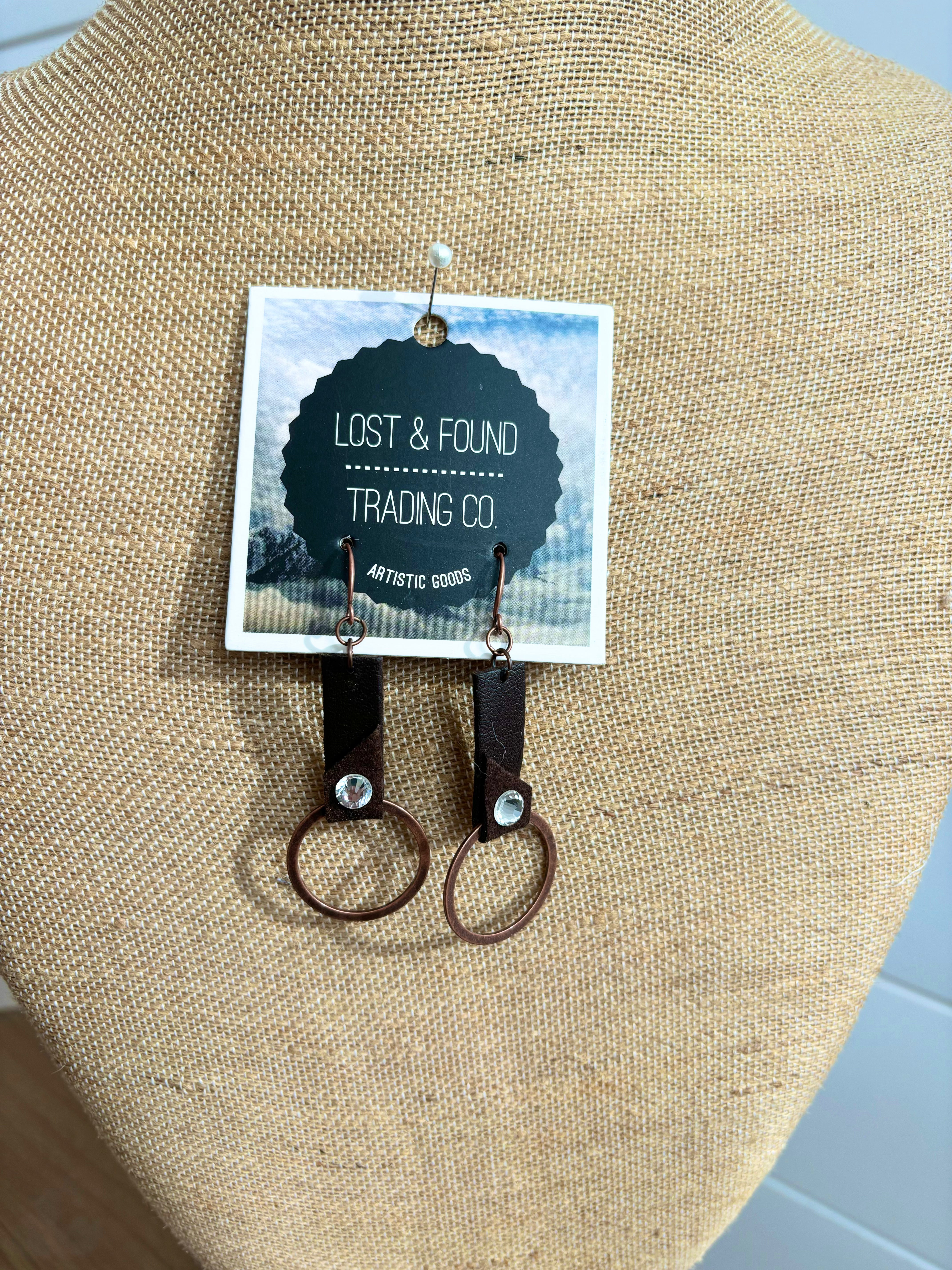 - Design: Circular rings wrapped with soft brown suede straps for a stylish, earthy look