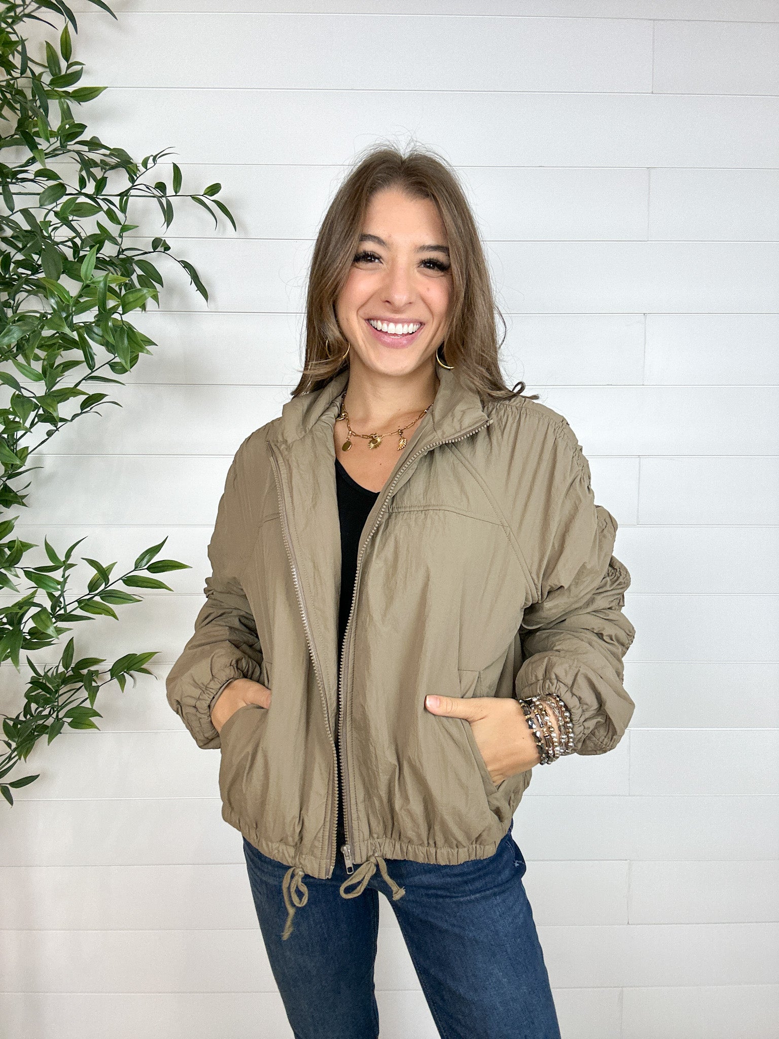 Your new throw-on-and-go favorite! The Cinched Sleeve Jacket brings effortless style with its relaxed fit and sporty edge. Designed with elasticized cuffs and hem plus an adjustable drawcord waist, it lets you tailor the fit to your mood. Lightweight, fully lined, and easy to layer—perfect for those crisp, in-between-weather days.
