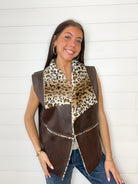 Faux Leopard & Leather Collared Vest