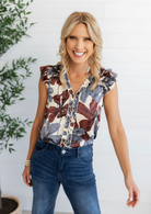 The Floral Satin Ruffle Detail Blouse brings instant charm to your wardrobe. Made from smooth, lightweight satin, it drapes beautifully while ruffled cap sleeves and a fluttery V-neckline add a touch of whimsy and femininity.