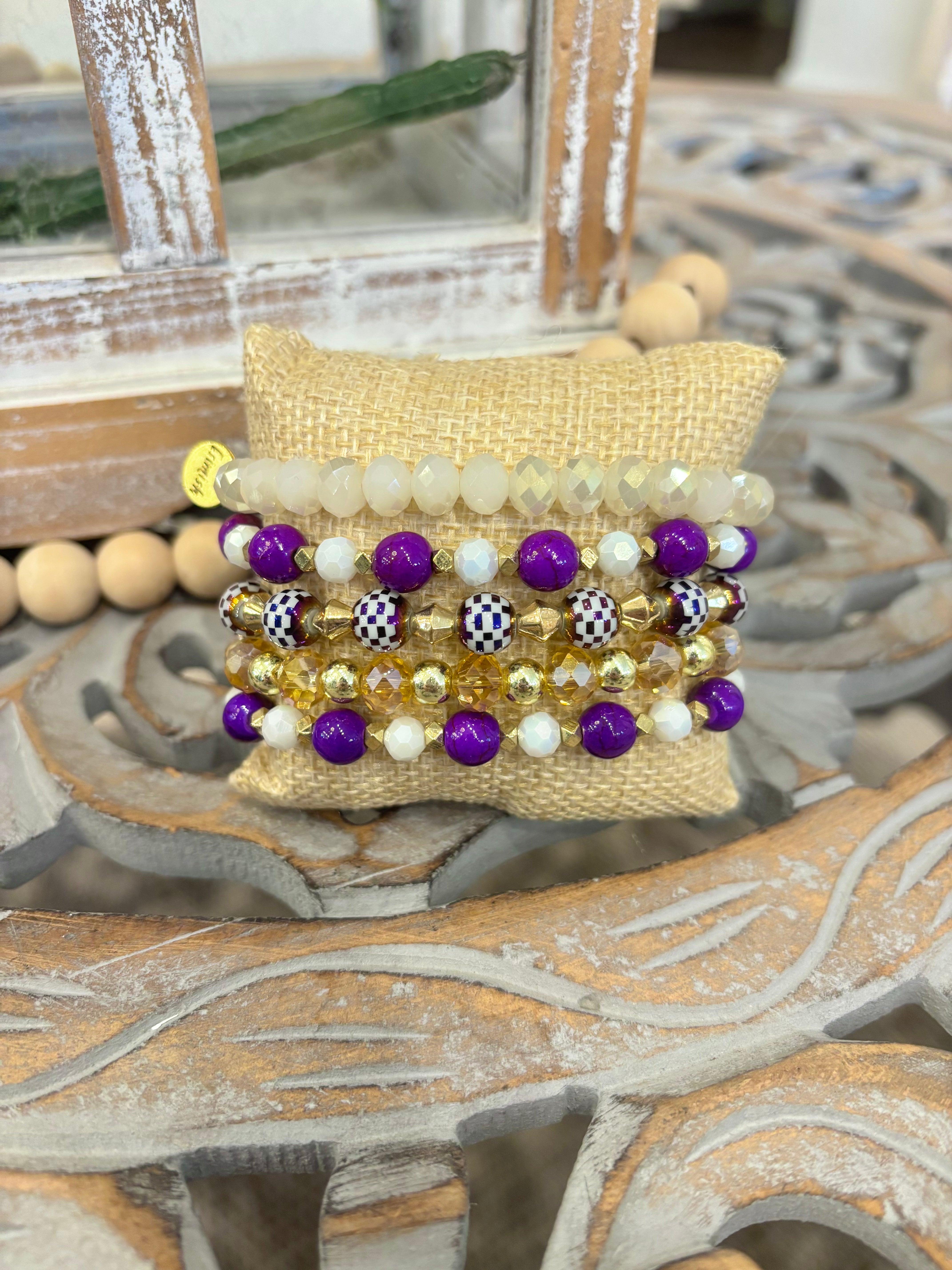 - Versatility: Whether you’re at the stadium, hosting a tailgate, or cheering from home, the Football Game Day Stack Bracelet is the perfect accessory to showcase your team pride. Pair it with your favorite jersey, t-shirt, or casual outfit for an added pop of color and style.