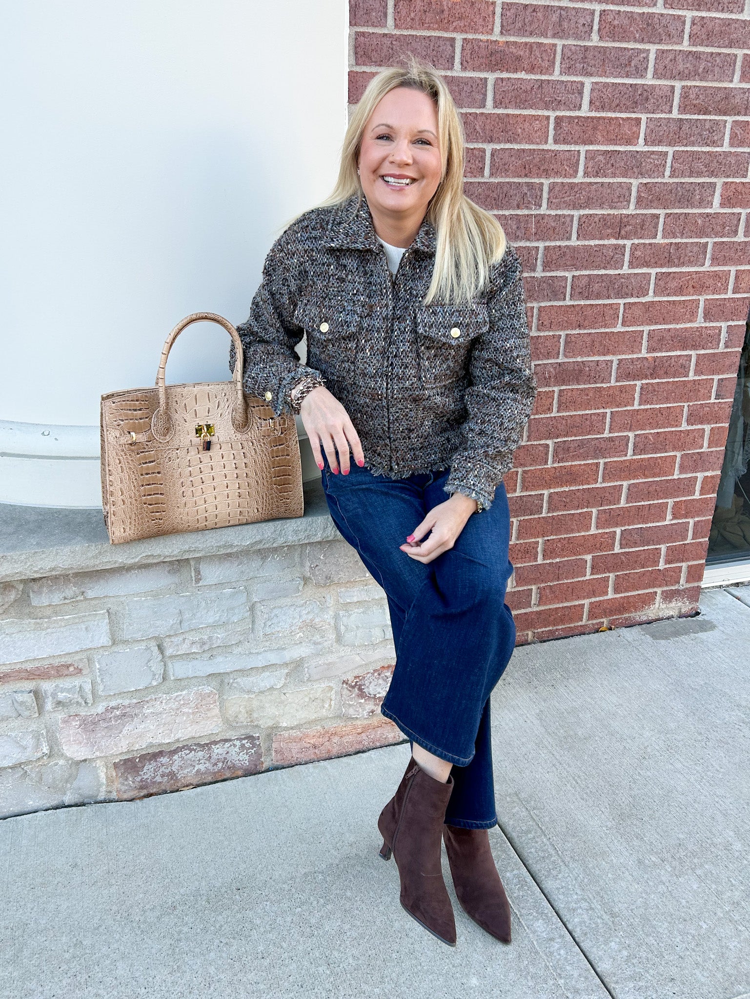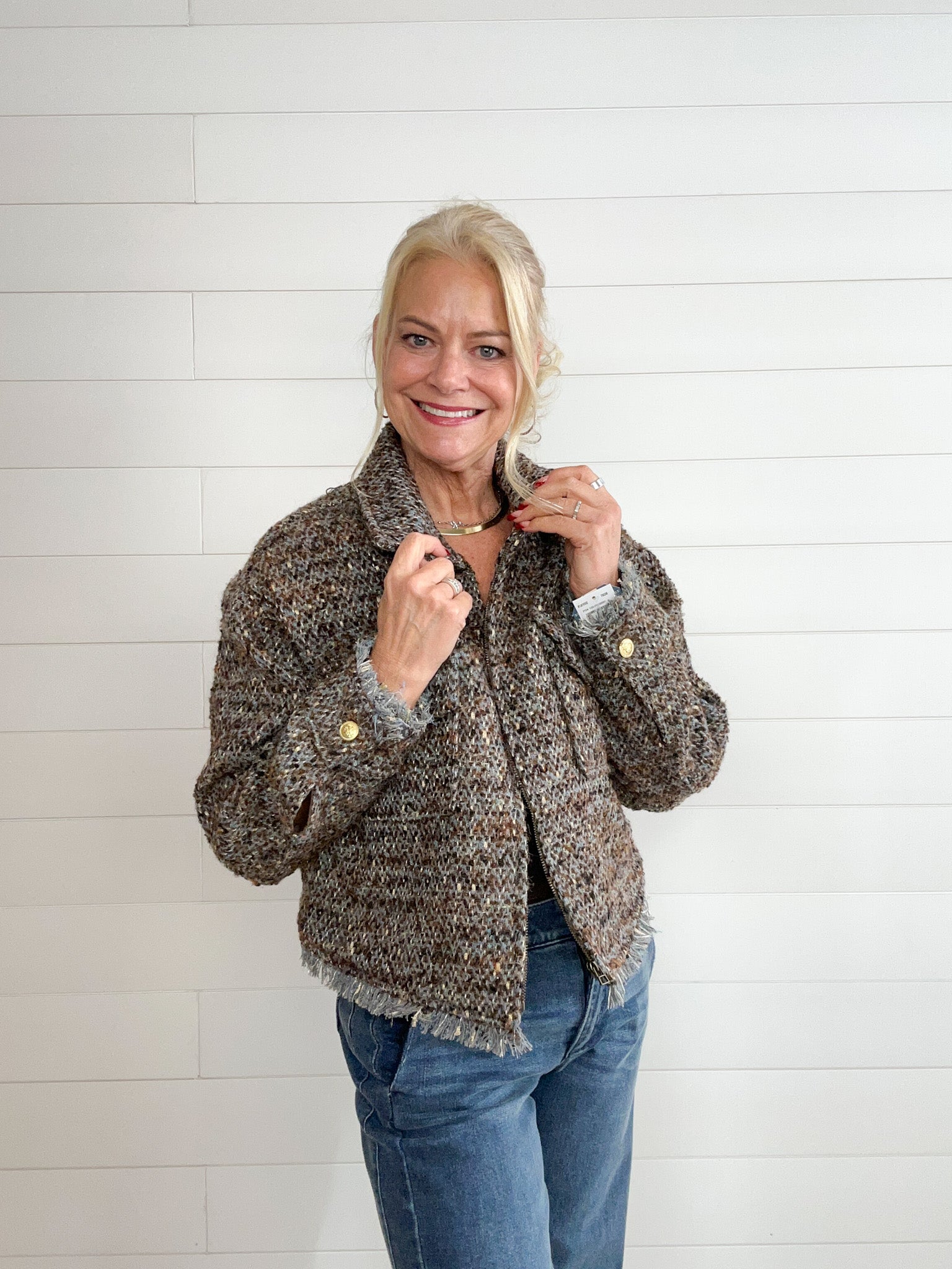 Fray Hem Cropped Tweed Jacket