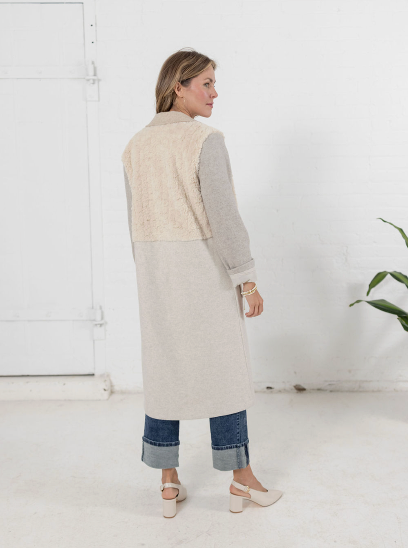 Half Fur Blocked Duster Coat
