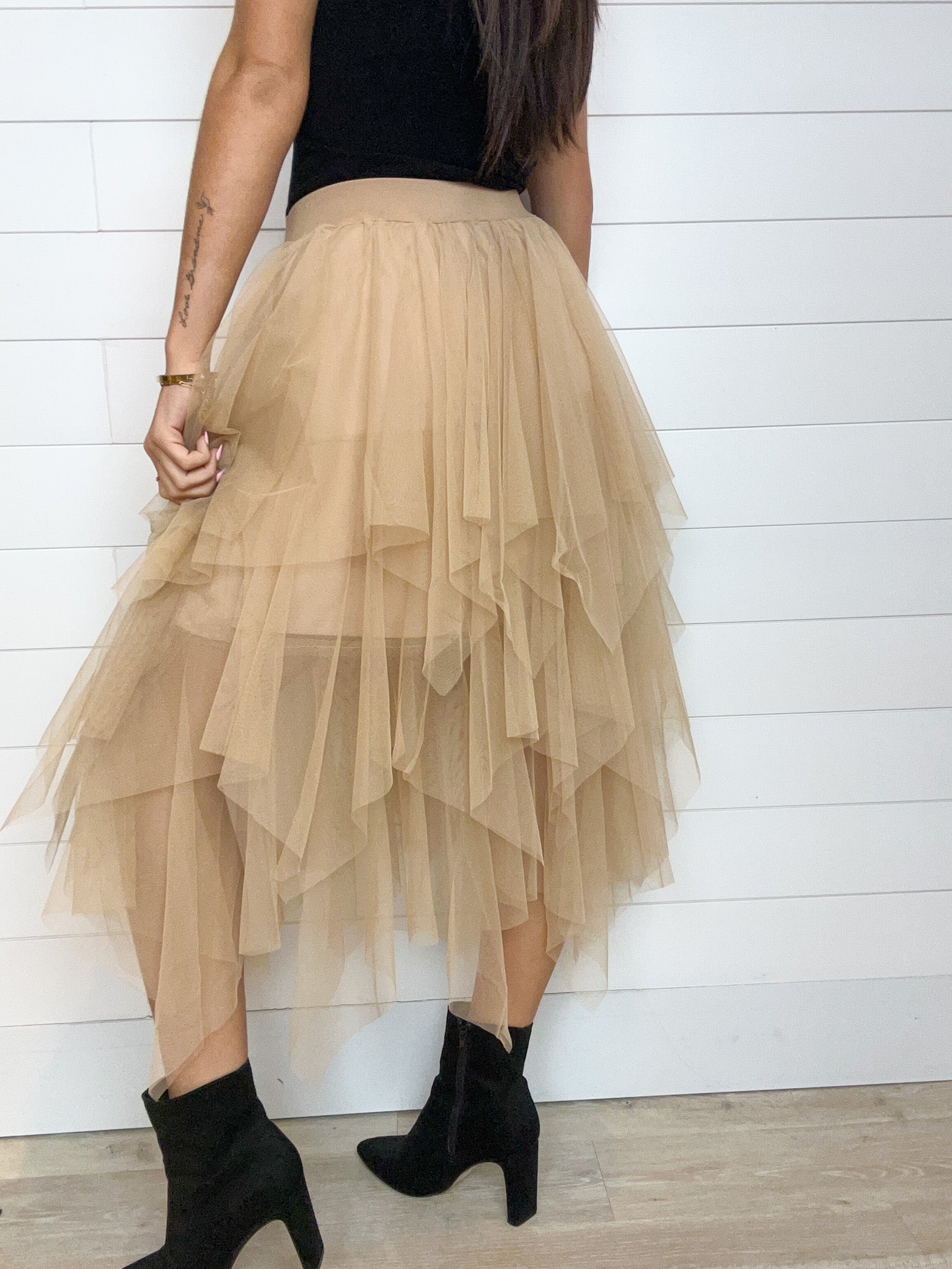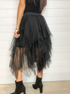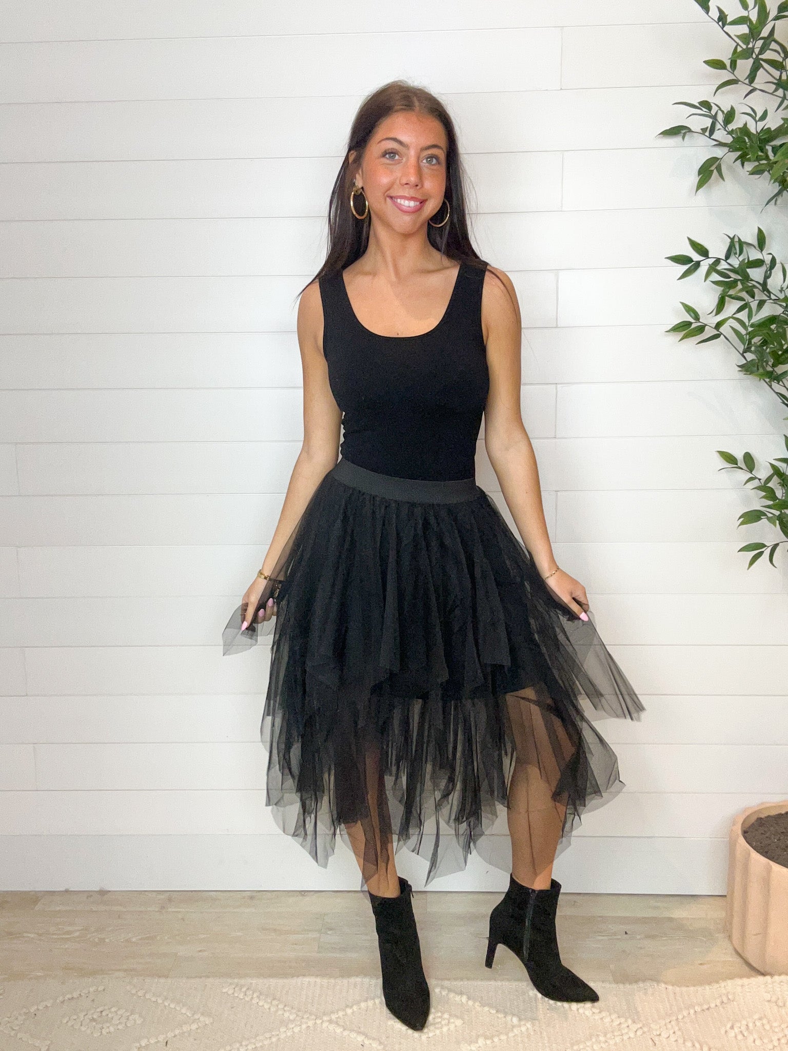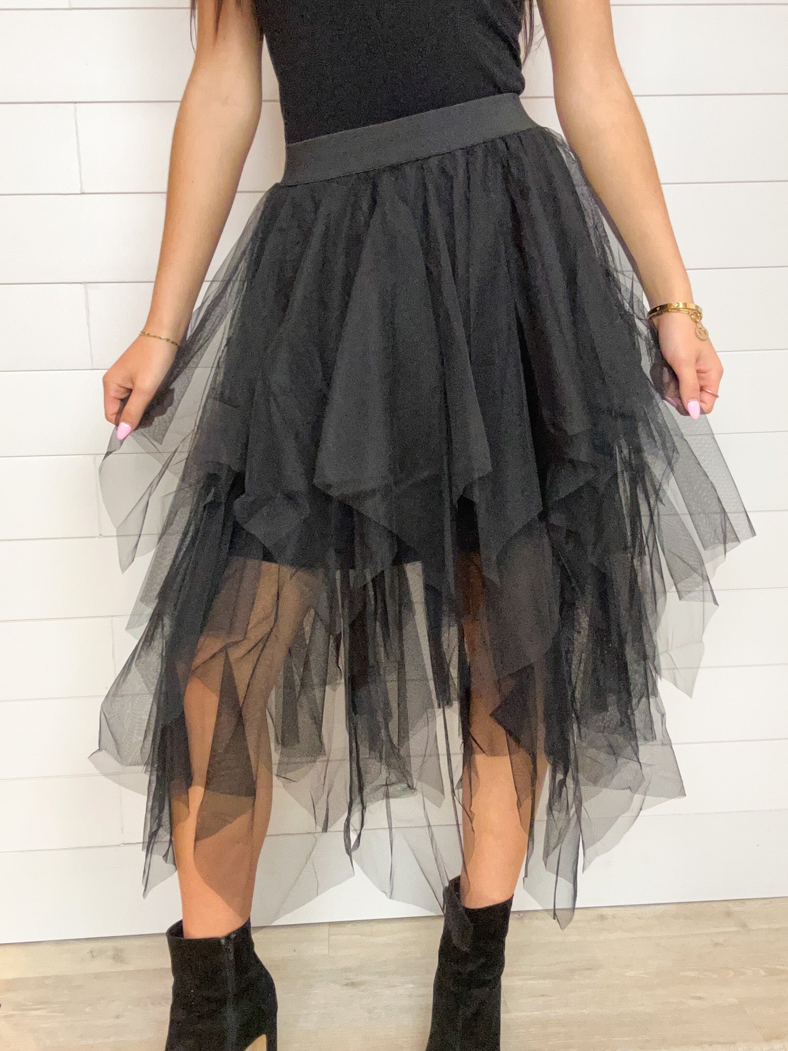 The Irregular Hem Tiered Mesh Skirt is made for movement. With its layered mesh design and asymmetrical hem, it brings flowy drama to every step. The outer mesh falls to a chic midi length, while the soft lining hits just above the knee for comfortable coverage. Light, airy, and oh-so romantic, this skirt is the perfect way to dress up your everyday or add a dreamy touch to special occasions.