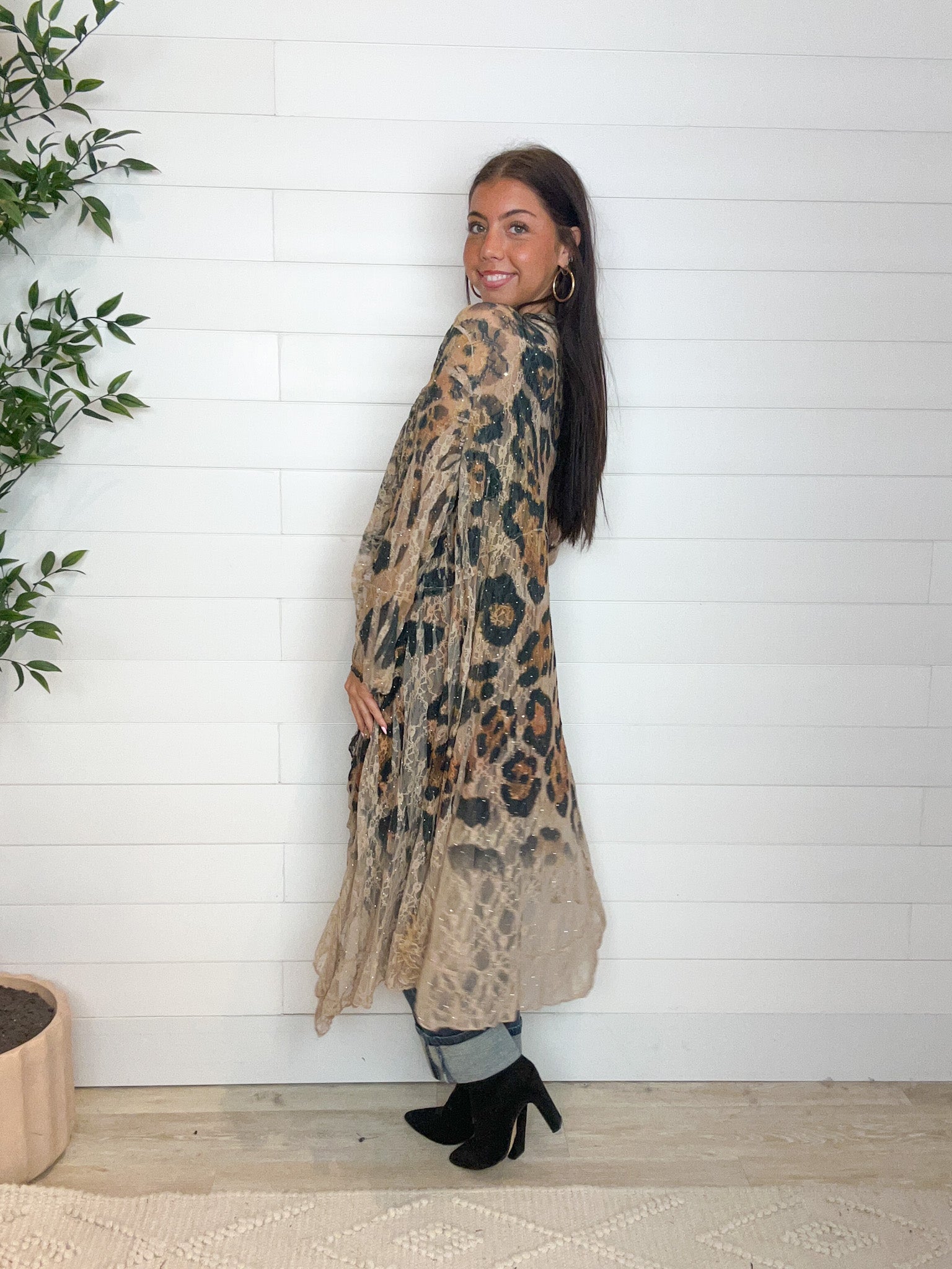 Leopard print duster with flowy silhouette