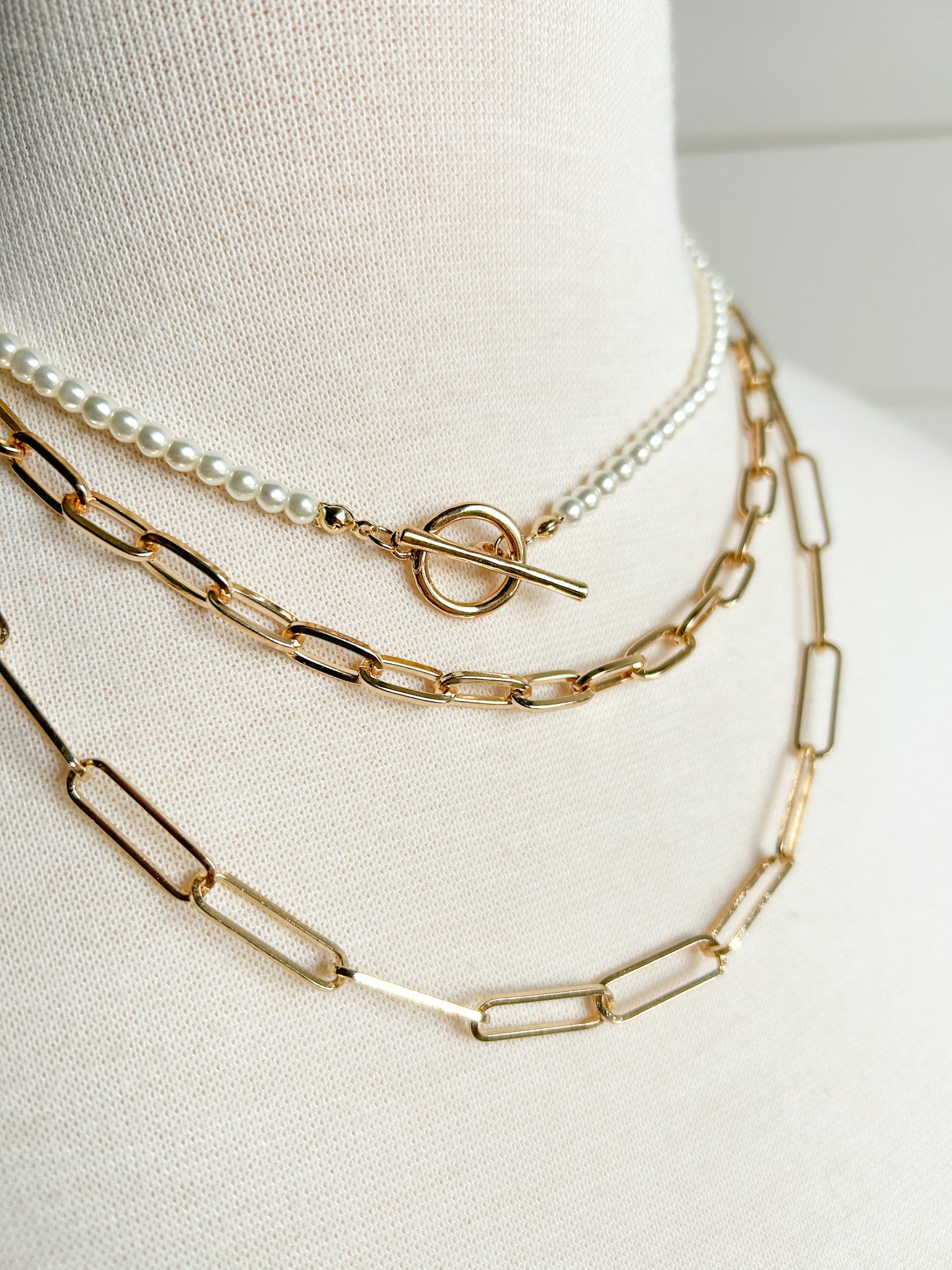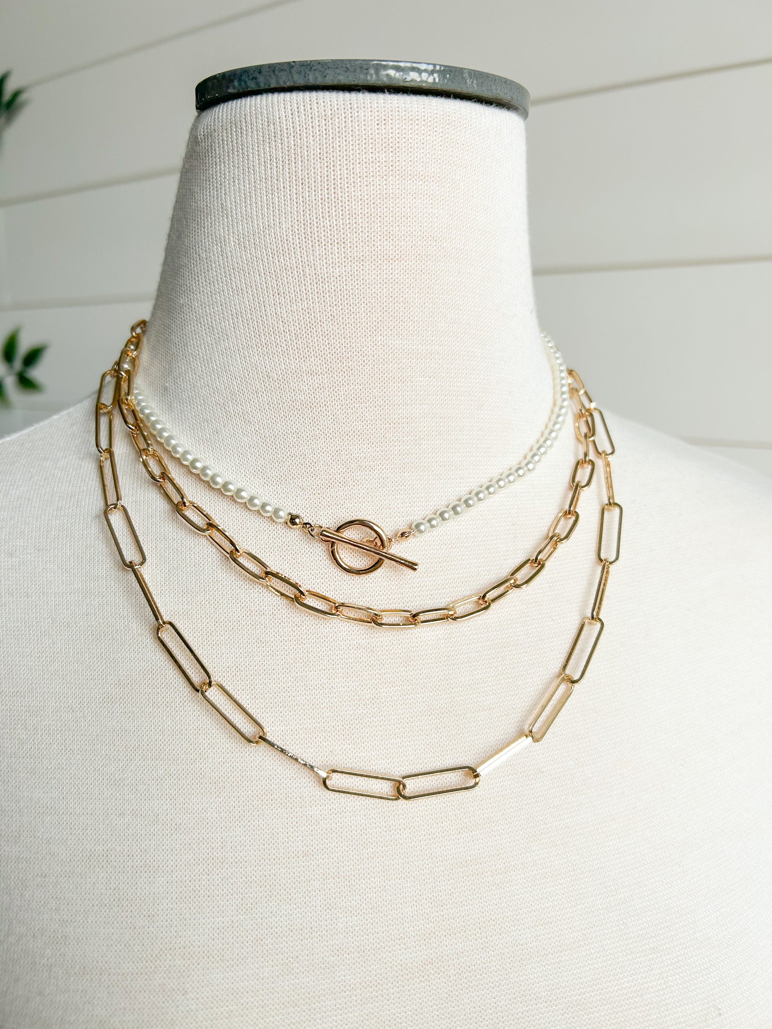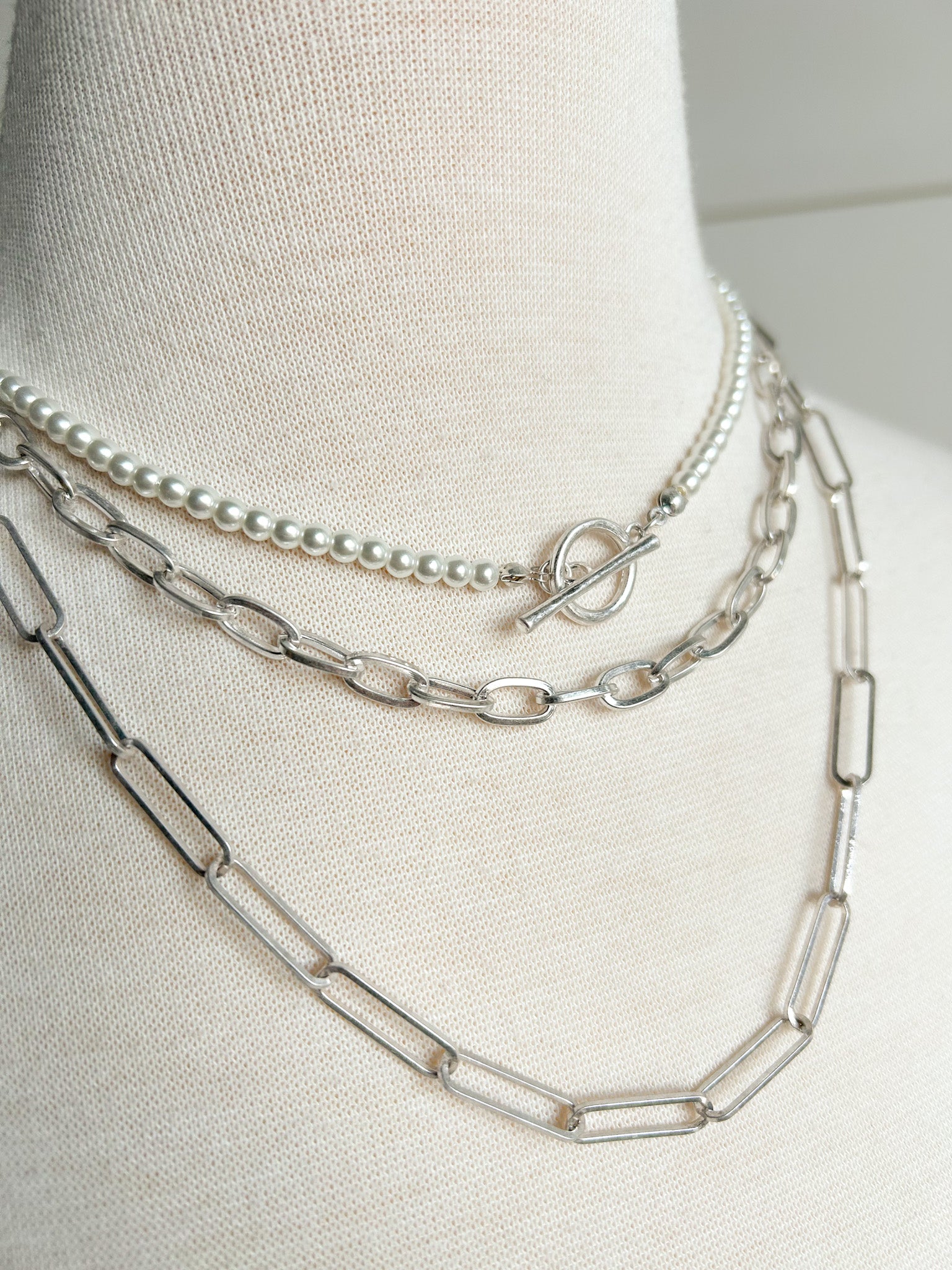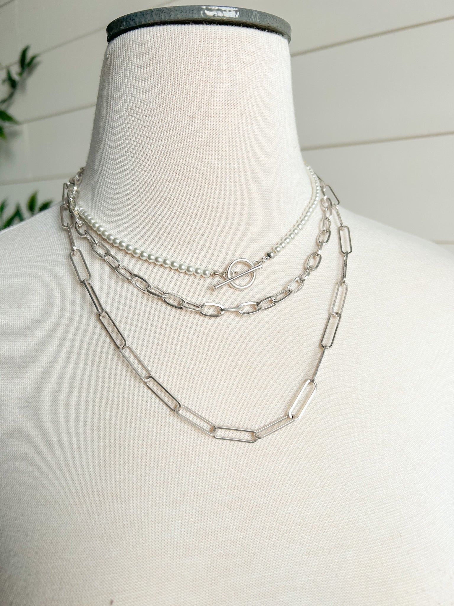 Cream pearl layered 3-piece necklace set Length: 15 1/2" + 3" ext. 18" + 3" ext. 16"