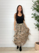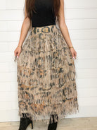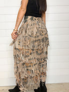 Shake up your style with the Leopard Print Tiered Fringe Midi Skirt. Designed with layers of swingy fringe in a bold leopard print, this skirt was made to move with youâwhether youâre twirling on the dance floor or just adding a little sass to your everyday look. The soft fabric feels amazing, while the elastic waistband keeps it comfy all day long. Equal parts fierce and fun, itâs the skirt that steals the spotlight.
