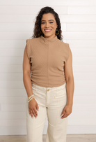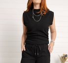 Meet your new layering hero: the Mac and Me Funnel Neck Side Ruched Top. With its cozy funnel neck and body-loving diagonal ribbing, this top is all about comfort that flatters. The ribbing angles inward to create a subtle hourglass effect, and the side ruching adds a little shape without clinging. It’s soft, stretchy, and effortlessly polished—aka perfect for real life.