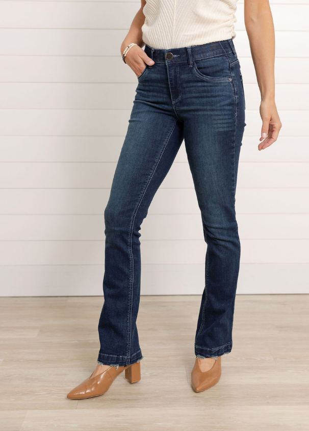 Meet your new denim bestie: the Mac and Me Indigo Bitty Boot. With just the right amount of bootcut sass, these dark wash beauties lengthen your legs and love your curves in all the right places. Featuring our famous Mac and Me technology that holds you in and lifts you up, you’ll feel as amazing as you look—promise. Oh, and don’t forget the tag inside that sweetly reminds you: You Are So Loved. 💙
