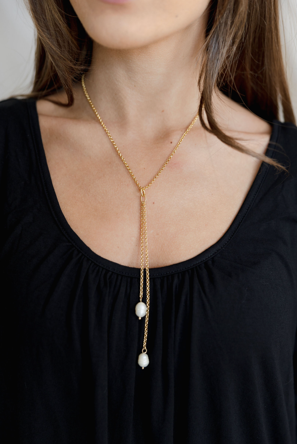 A beautiful take on a the classic pearl necklace. Wear to your favorite occasion or add a touch of elegance to a casual outfit.