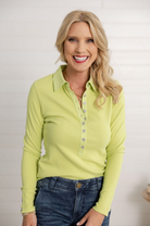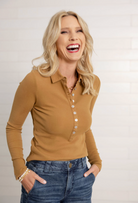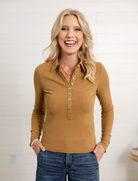 A timeless staple with a modern twist, the Mac and Me Single Rib Henley is designed to flatter and layer with ease. With its classic collar, buttoned neckline, and long sleeves, this fitted style hugs in all the right places while the cotton-spandex rib gives you just the right amount of stretch. Perfect on its own or as a chic base under your favorite jackets and sweaters.