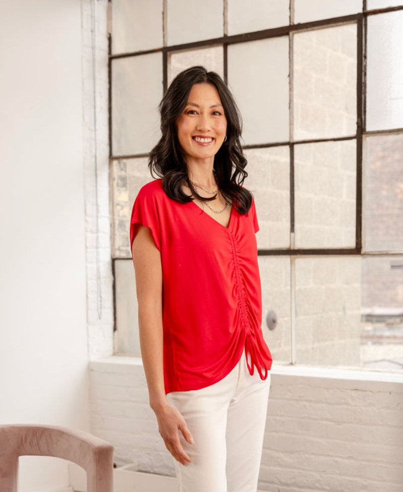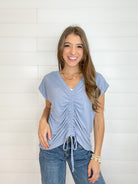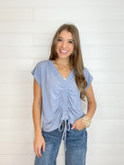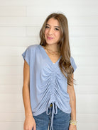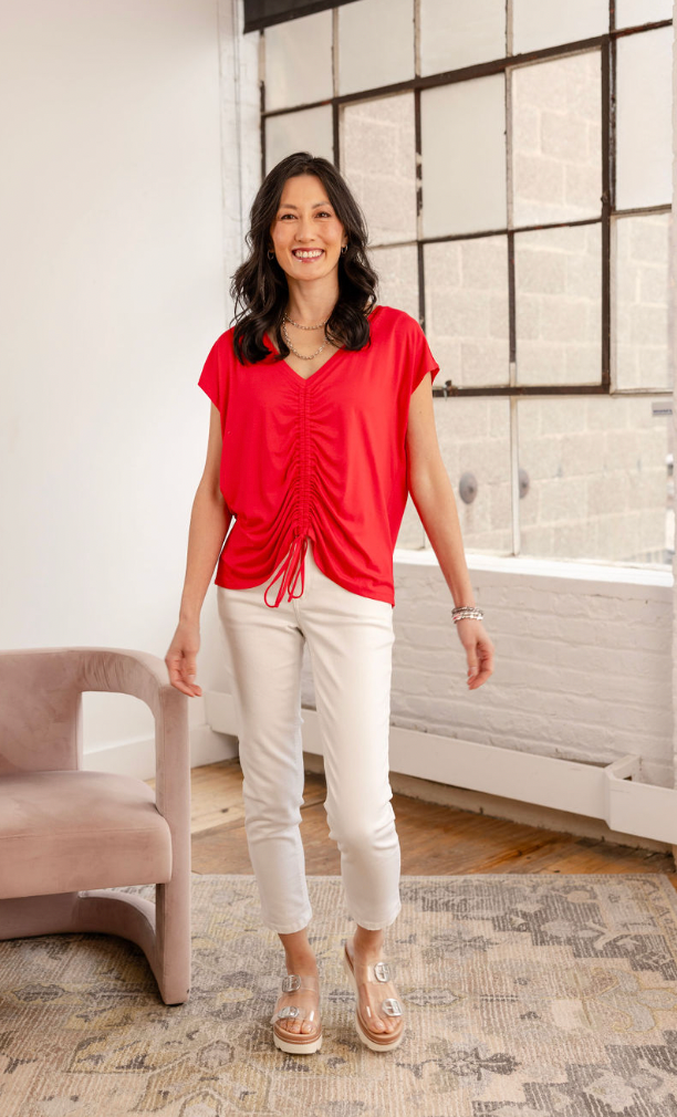 Mac and Me V-Neck Ruched Front Top combines flattering details with an effortlessly chic design.