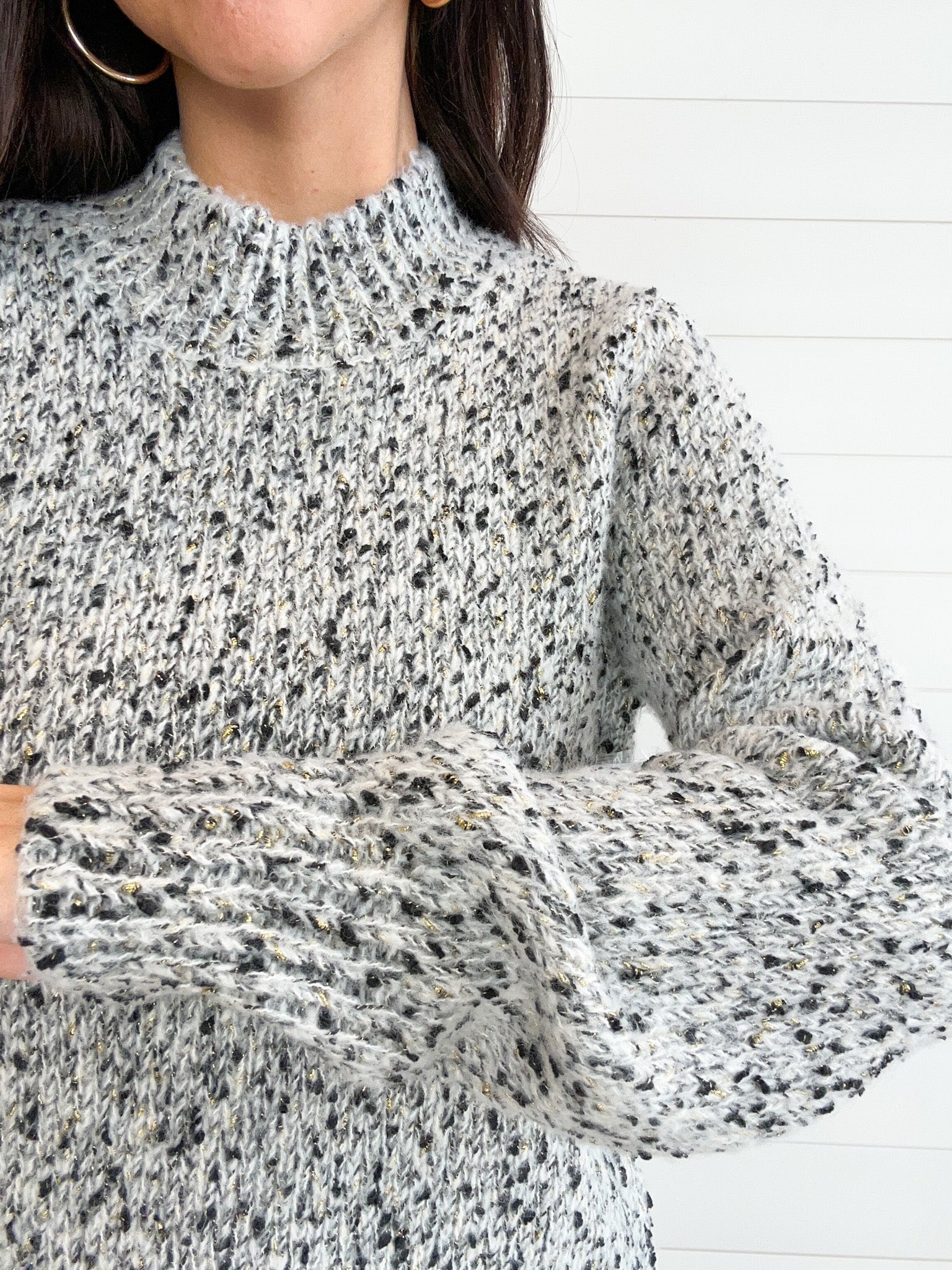 From our exclusive MB line, the Classic Confetti Knit Sweater is all about cozy charm with a hint of shine. Woven with colorful confetti yarn and subtle threads of gold lurex, it adds just the right touch of sparkle to your everyday style. The high crew neckline gives it a modern, slightly structured feel, while the soft, stretchy knit makes it as comfortable as it is cute.
