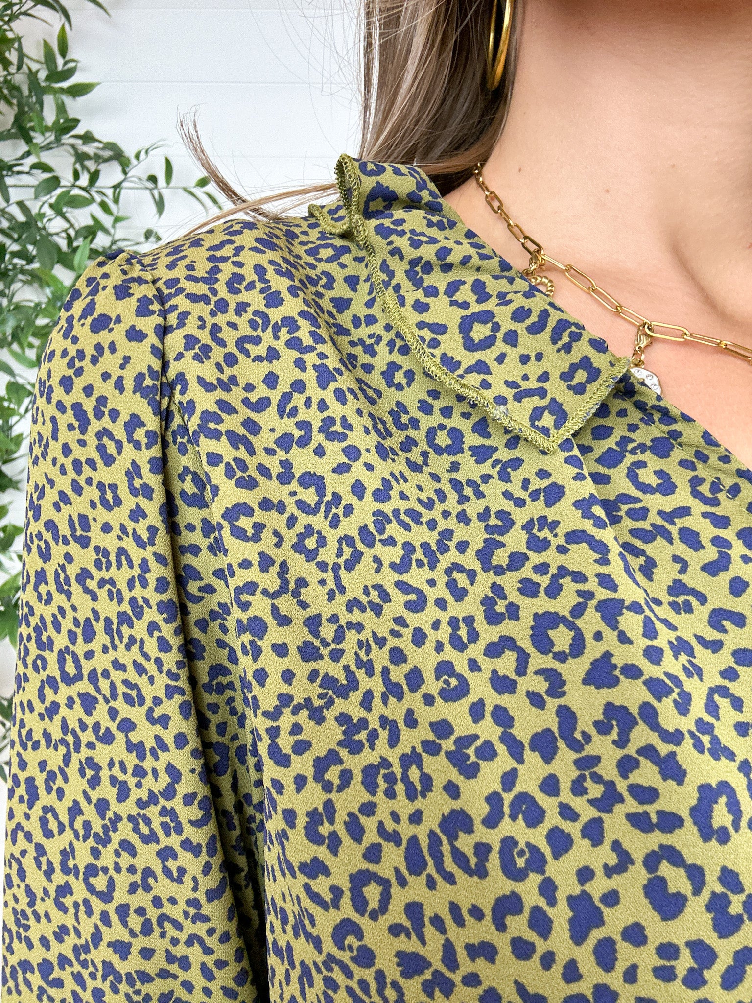 Earthy tones meet flirty details in the Micro Leopard Print Romantic Sleeve Blouse — a soft, feminine top with just the right touch of wild. The ruffle split neckline and fluttery double ruffle sleeves bring the romance, while the subtle micro leopard print adds a hint of playful edge. Perfect for dressing up denim or pairing with sleek skirts for a night out.
