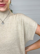 The Mock Neck Short Sleeve Layering Sweater is that perfect in-between piece—structured yet soft, cozy yet effortlessly cool. With its oversized, almost poncho-style fit and sleek mock neckline, it drapes beautifully over blouses or long sleeves for a chic, layered look. The soft knit blend adds a touch of stretch for easy comfort while keeping things polished.