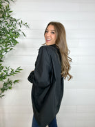 The Oversize Poplin V-Neck Blouse is that perfect blend of relaxed and refined. Made from 100% cotton with a silky poplin finish, it drapes beautifully while feeling soft and breathable. The oversized fit, subtle dolman sleeves, and high-low hem give it an easy elegance — ideal for styling tucked, tied, or left loose.