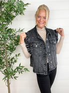 This oversized denim vest takes classic cool and gives it a playful twist. Designed with statement ruffle sleeves and a raw-cut hem, it balances edgy and feminine in the best way. The button-front closure and easy, roomy fit make it a layering essential you’ll reach for again and again.