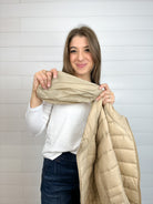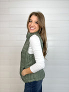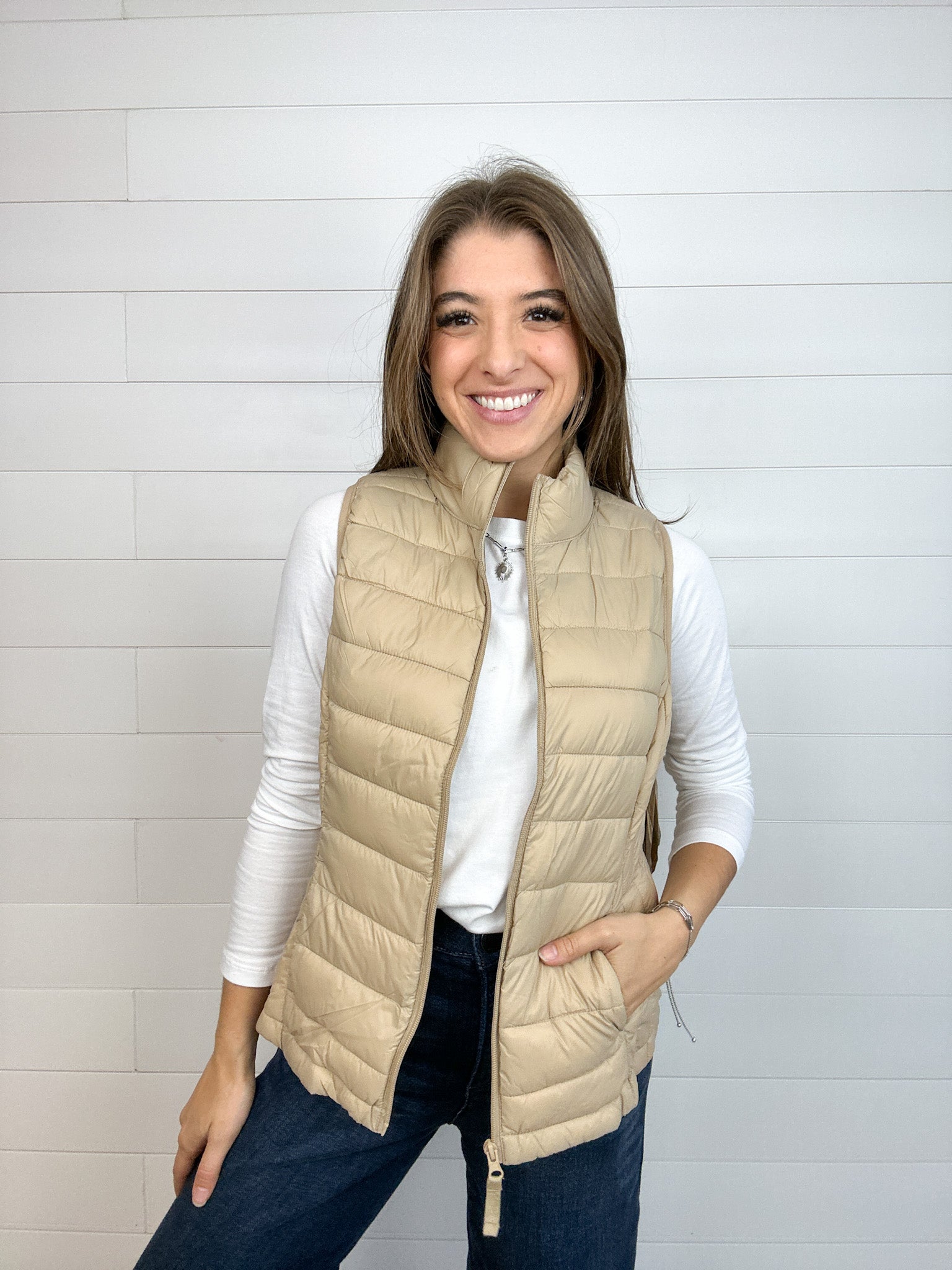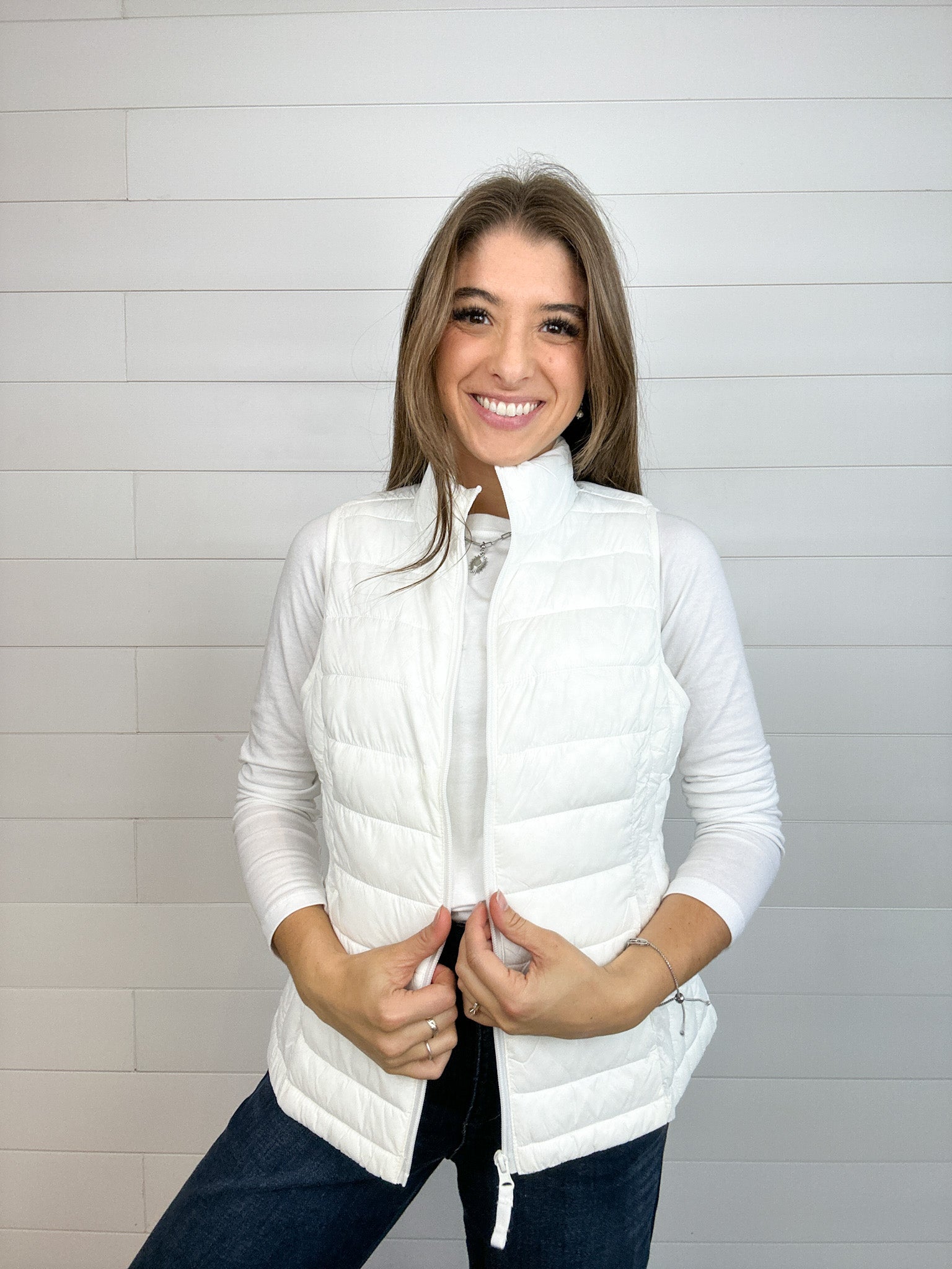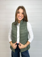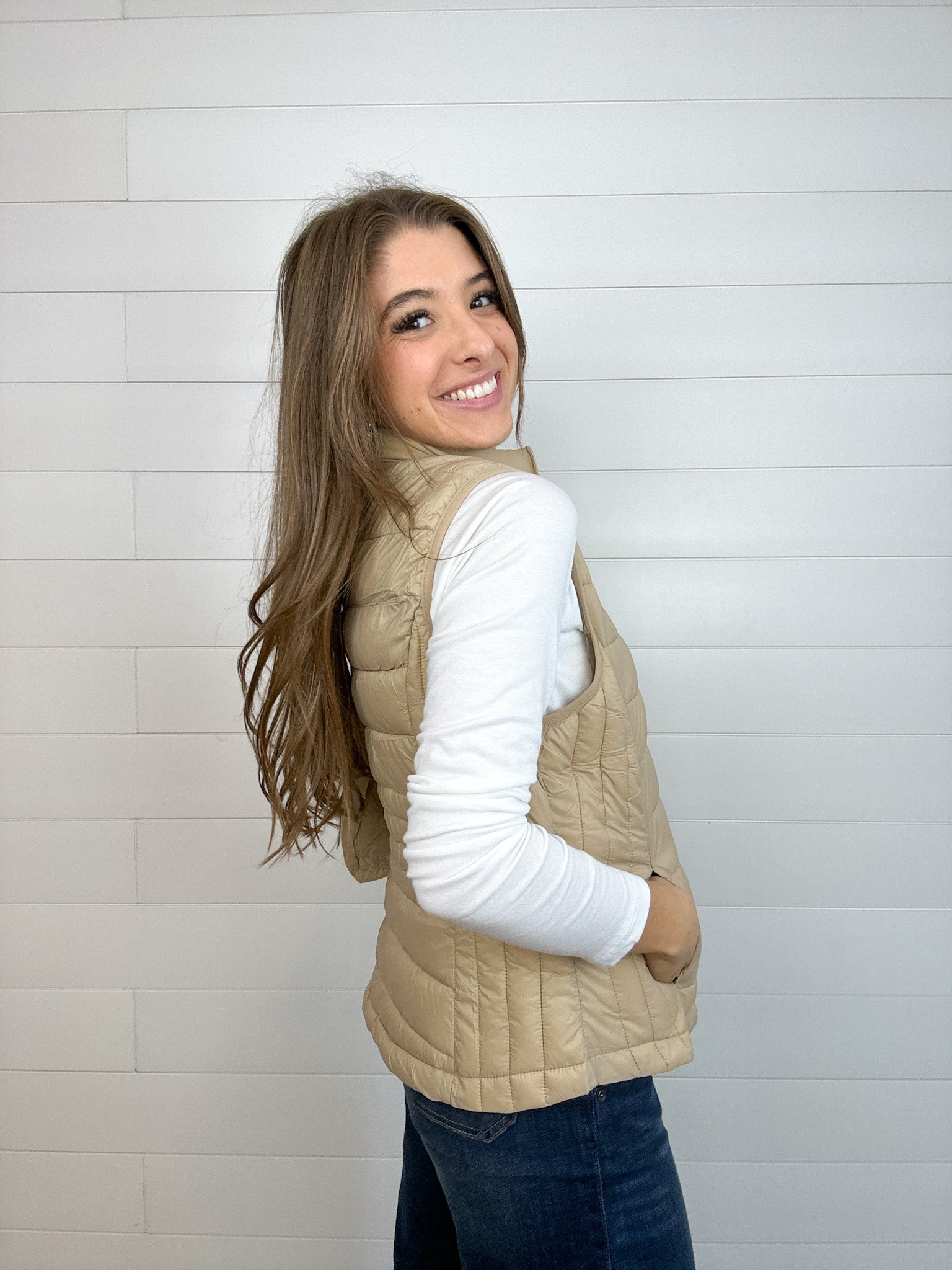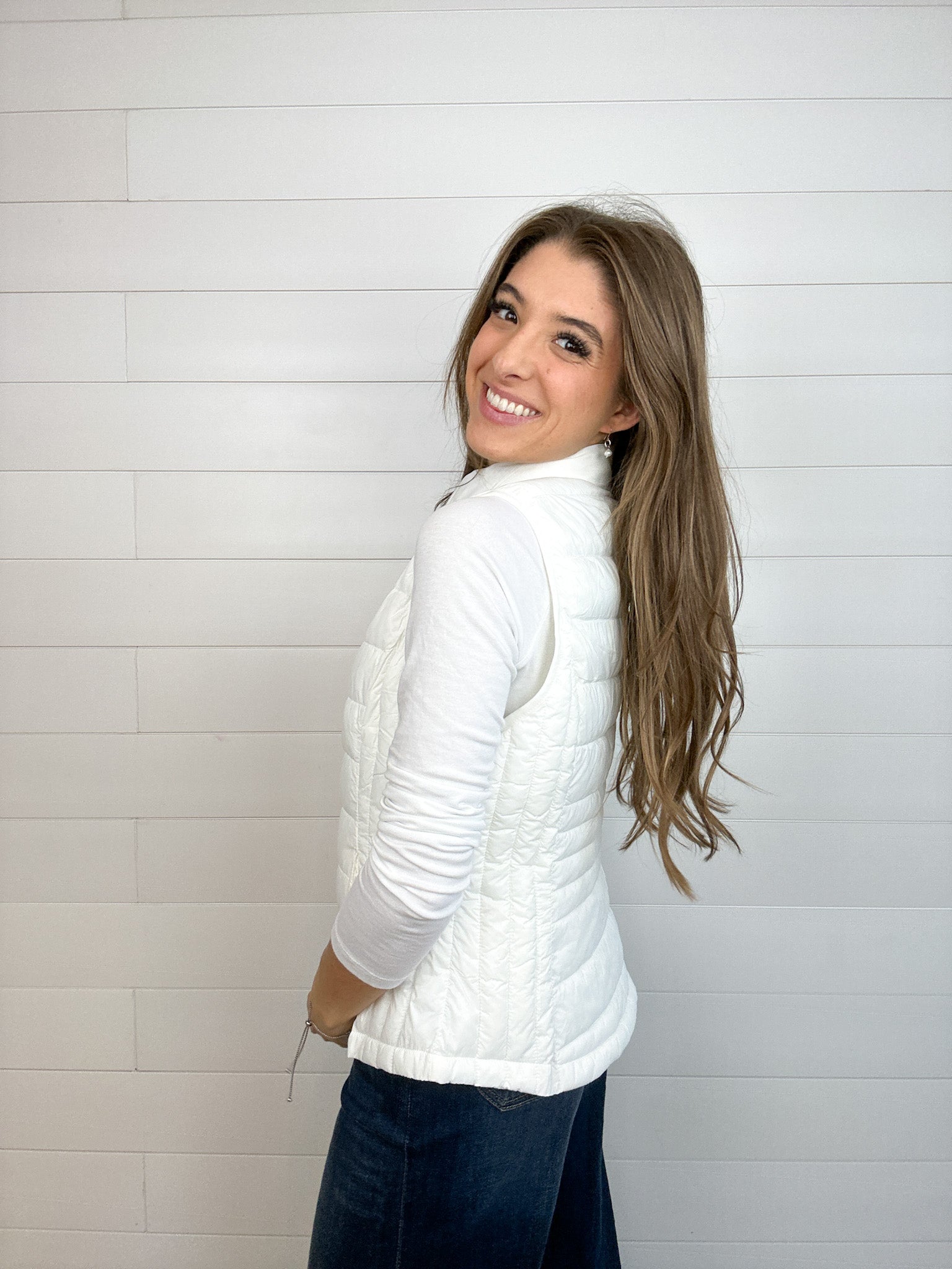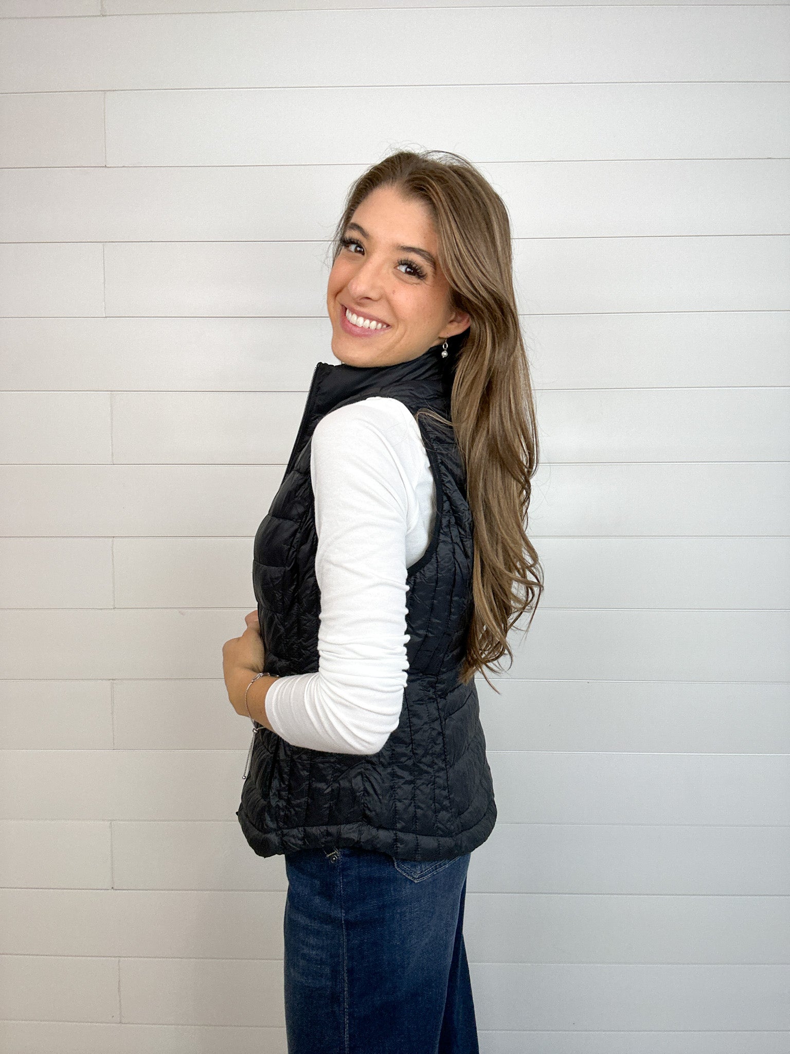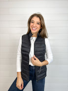 Lightweight yet cozy, this puffer vest is designed with bar-style quilting that creates a flattering, slim silhouette. Complete with zip-front closure and pockets for everyday ease, it’s the perfect layer for crisp mornings or travel—packable and practical without sacrificing style.