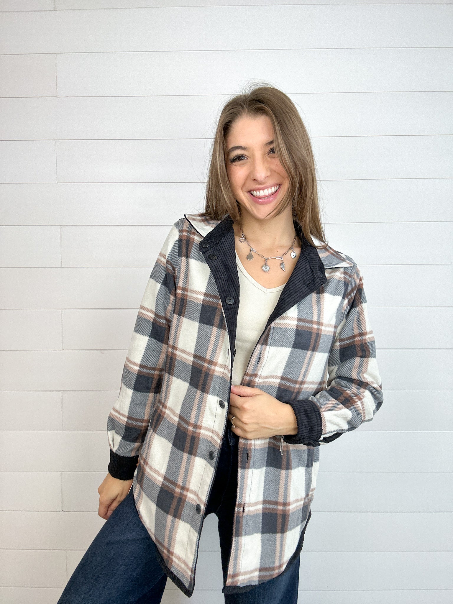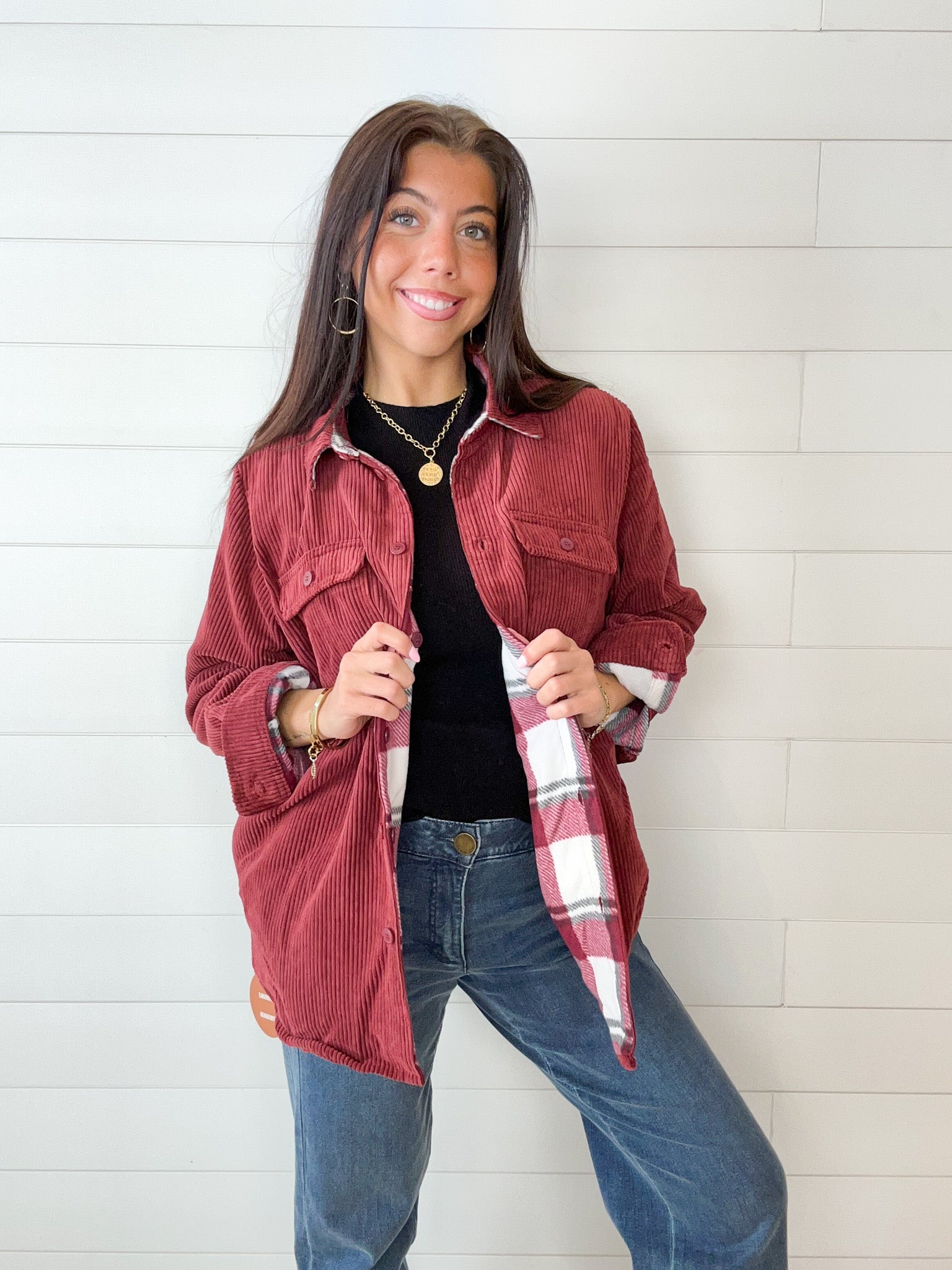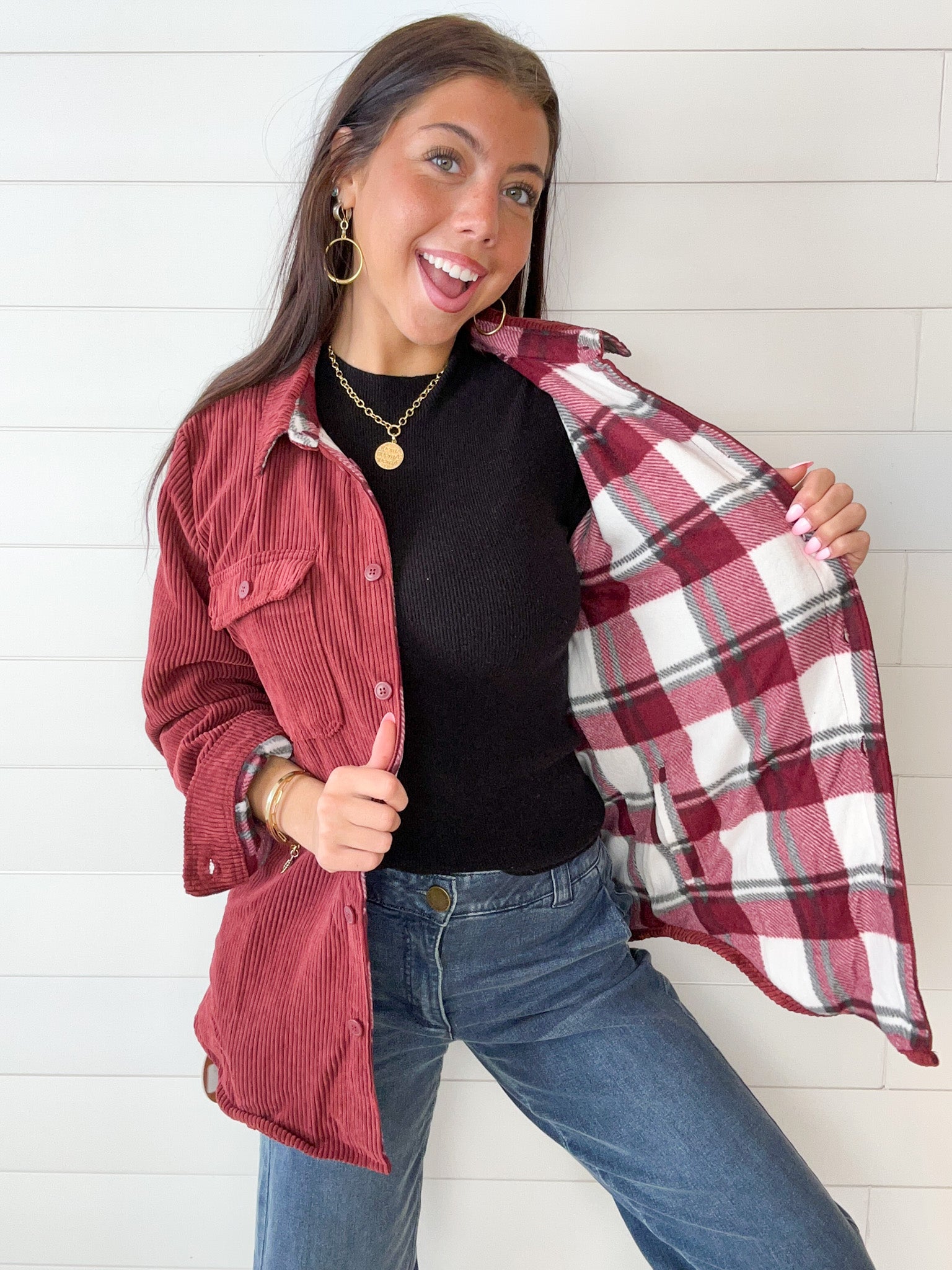 Style Tip: Flip it depending on your mood—rock the cord side with wide-leg denim for a retro look, or go plaid over leggings and boots for peak fall vibes. 🍂