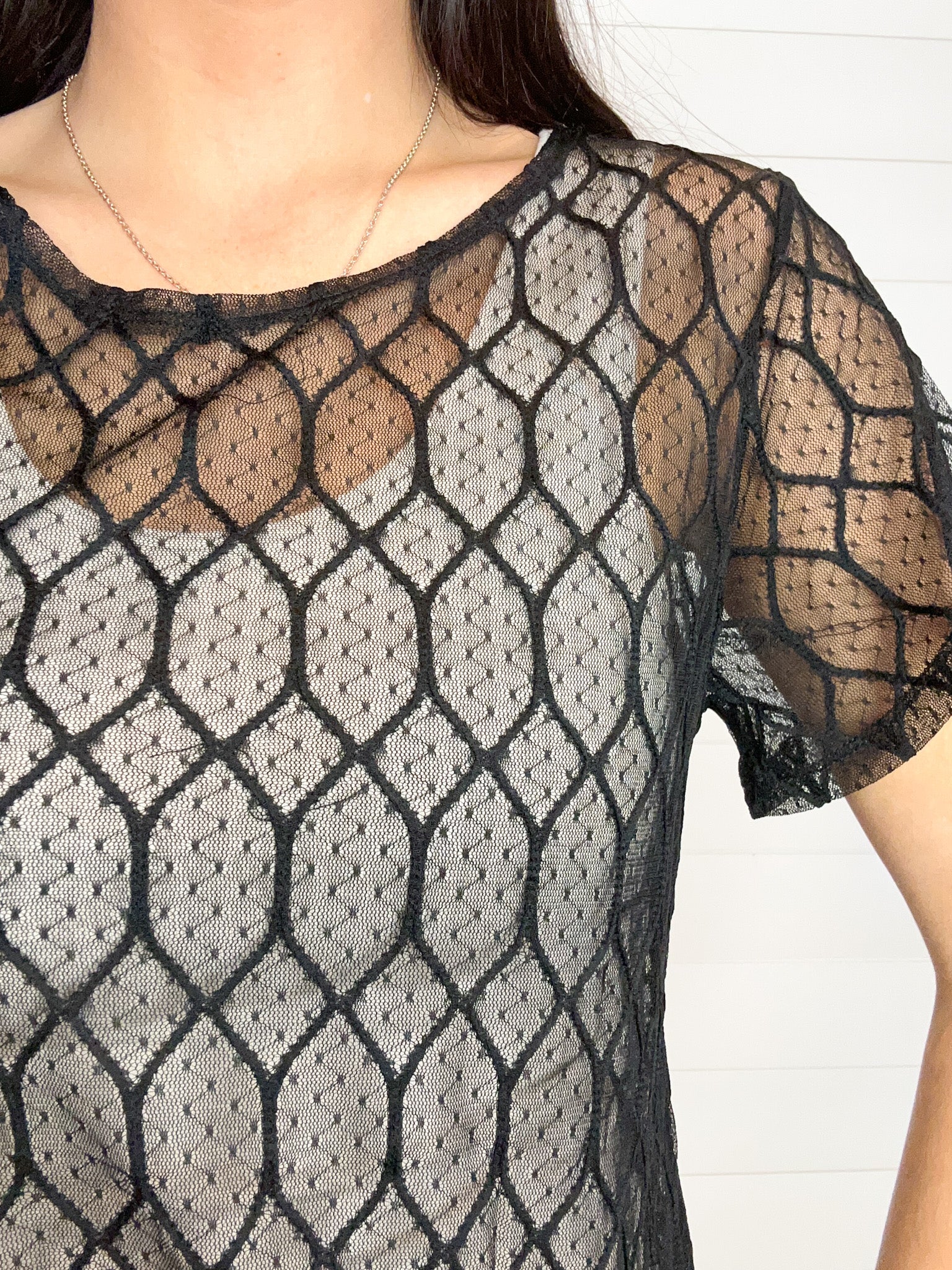 The Short Sleeve Diamond Mesh Top is your new secret styling weapon. Designed with a classic crew neckline and short sleeves, its diamond-patterned mesh adds just the right amount of edge to any look. Lightweight and stretchy, it layers effortlessly over bralettes, camis, or even under jackets for a cool-girl vibe. Whether you dress it up or down, this top is all about versatile style.
