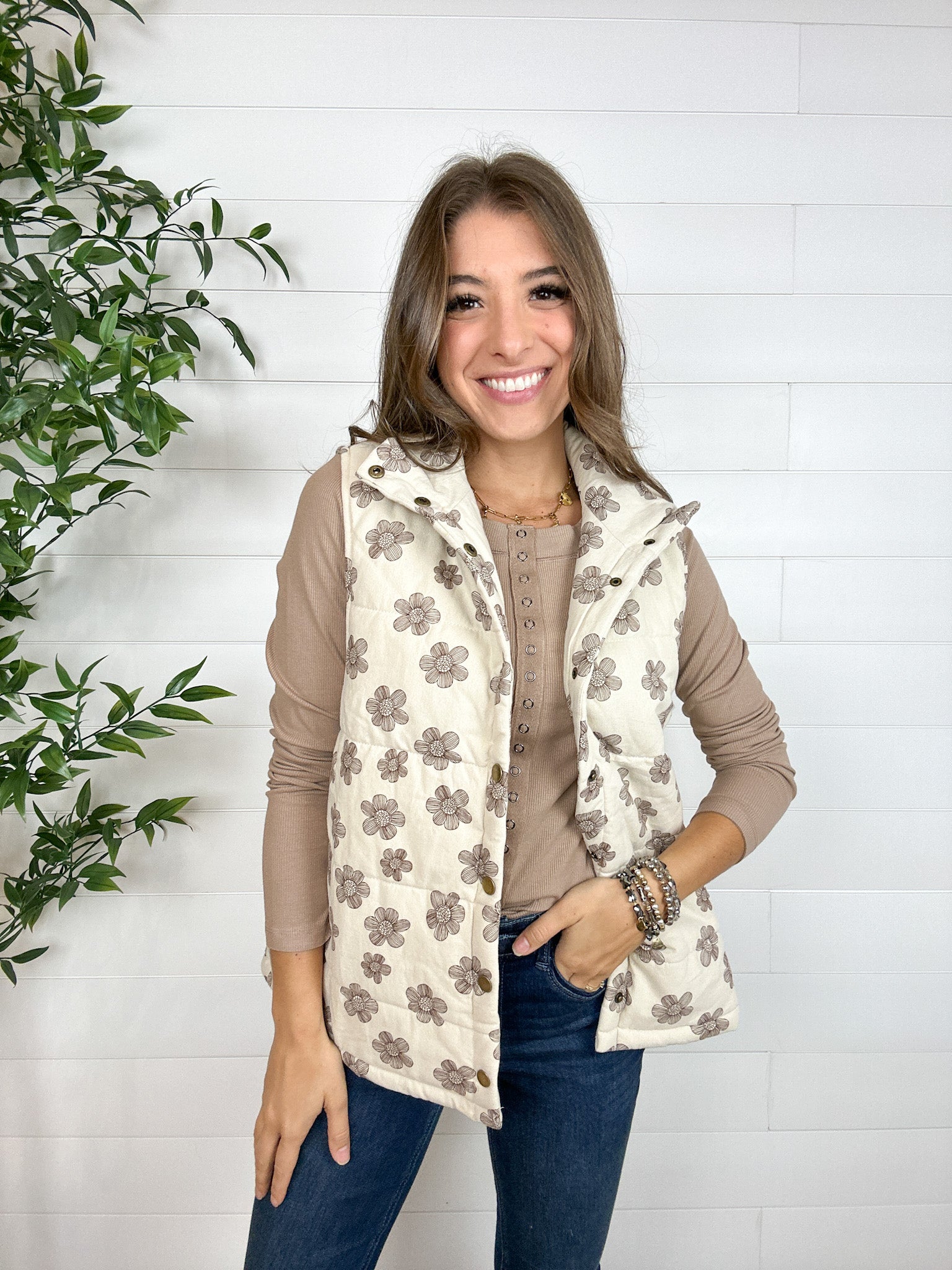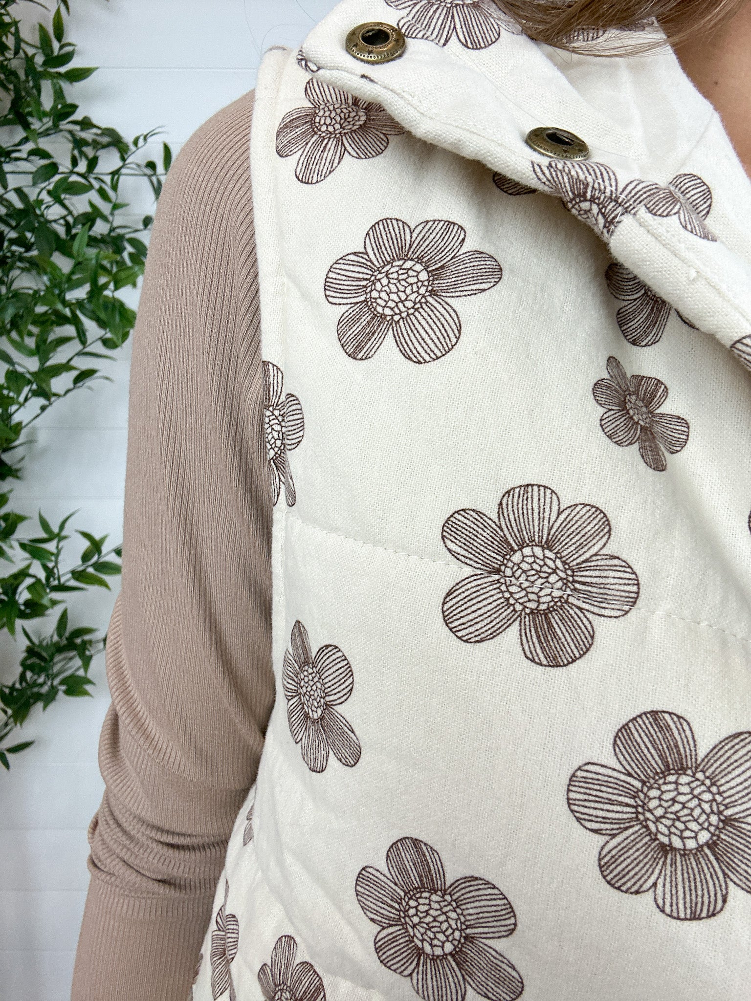 Stay cozy and cute in the Sketch Floral Padded Vest — a lightweight layer with just the right amount of puff. Covered in sketched five-petal florals, this vest brings a playful touch to your fall rotation while keeping you comfortably warm. The cotton shell gives it a soft, breathable feel that’s perfect for everyday wear.