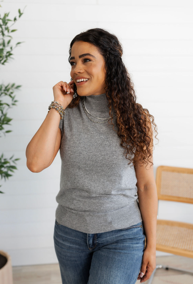 Your new layering essential is here! The Sleeveless Mock Neck Layering Sweater Top is that perfectly polished piece that works under jackets, cardigans, or all on its own. Made from a soft fine-knit fabric that’s lightweight yet cozy, it offers just the right touch of texture. The ribbed hem and neckline give it a refined finish, while the sleeveless cut keeps it effortlessly versatile through every season.
