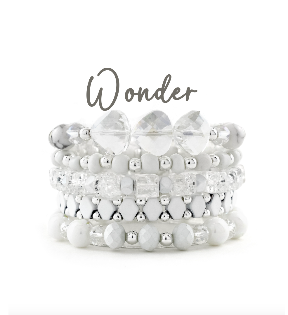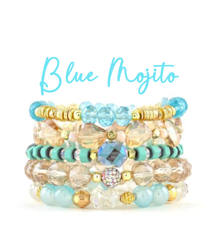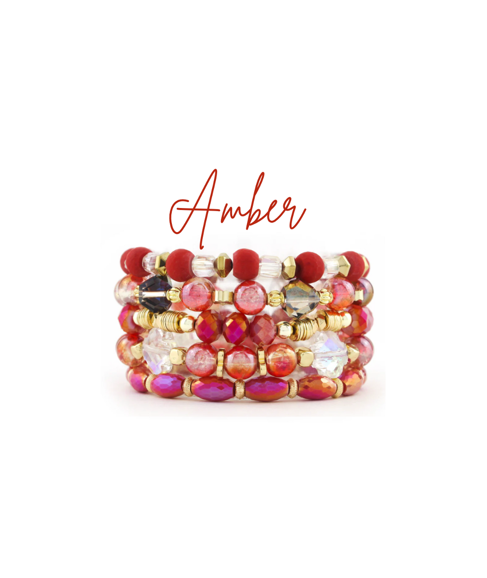 A coordinated stack of 5 stretchy, elastic beaded bracelets ready to be the finishing touch to your favorite outfit! Keep your stacks together, or mix and match the bracelets in your collection to create your own unique look!