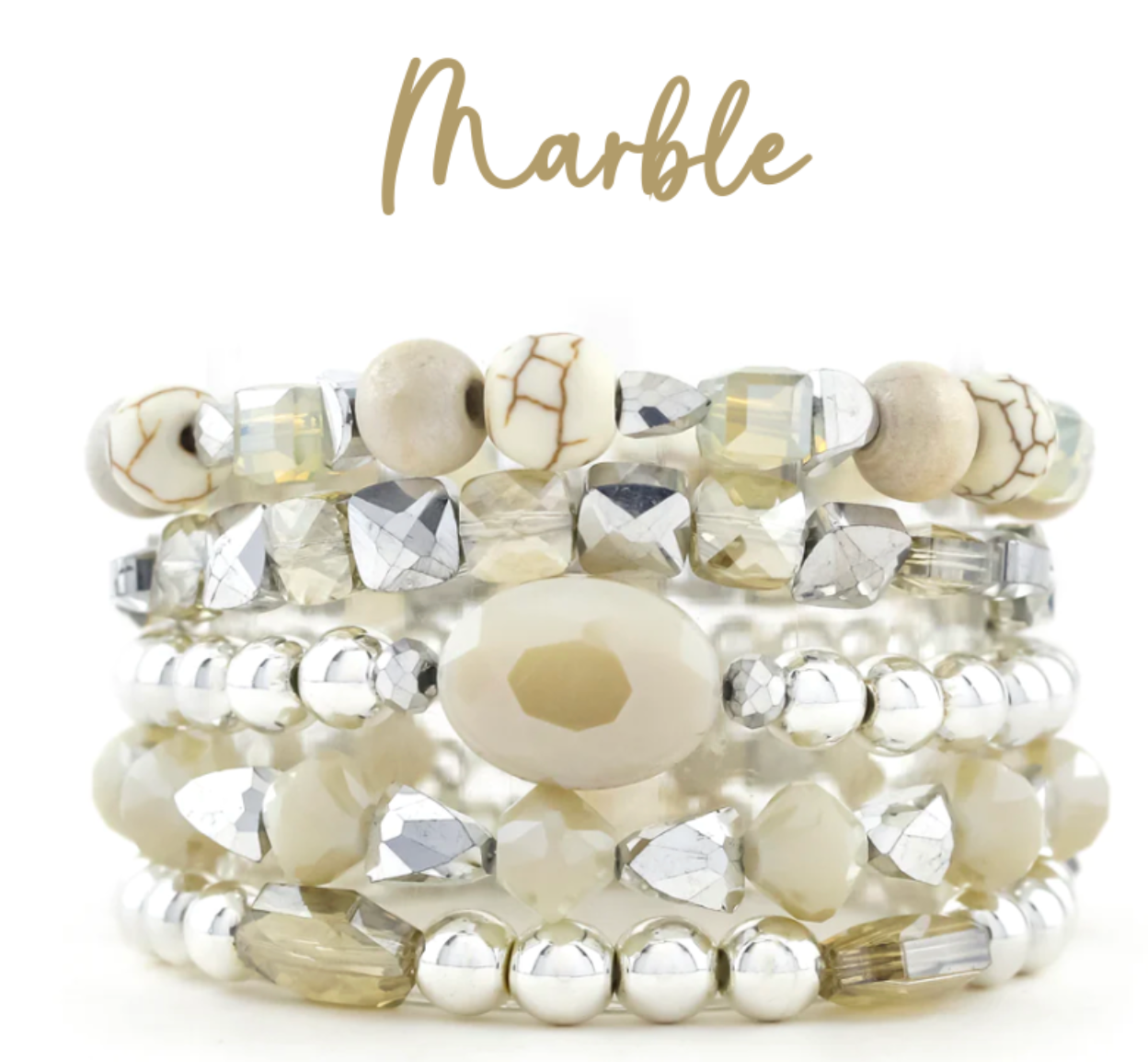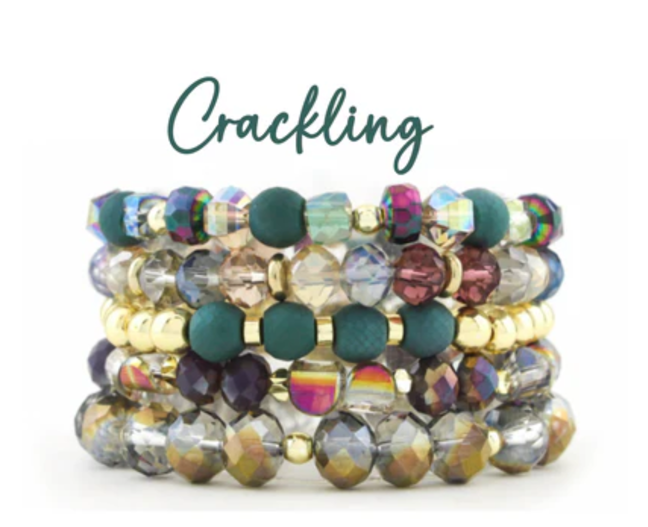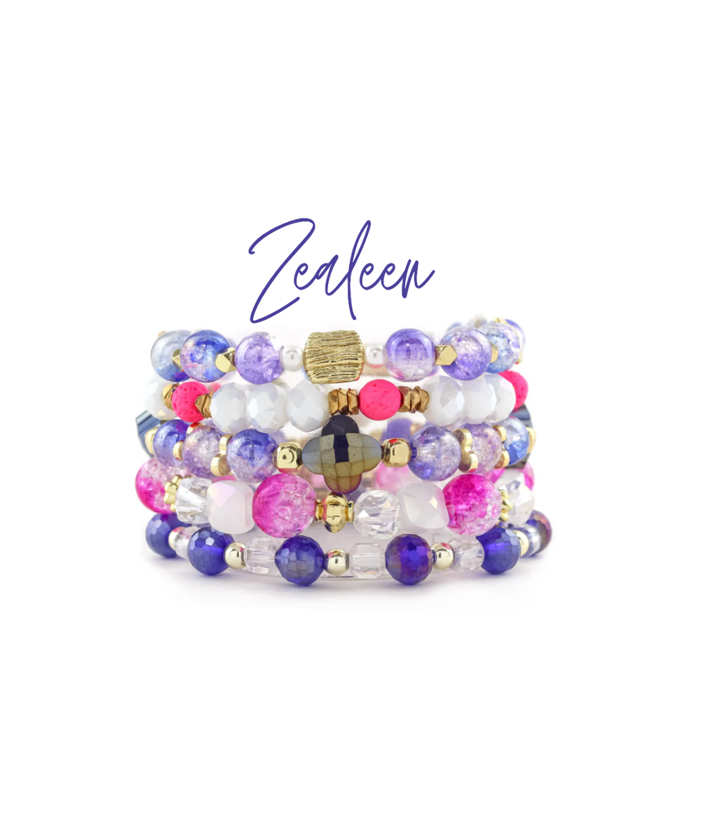 A coordinated stack of 5 stretchy, elastic beaded bracelets ready to be the finishing touch to your favorite outfit! Keep your stacks together, or mix and match the bracelets in your collection to create your own unique look!