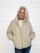 Stay cozy without the bulk in this Square Quilted Light Puffer Jacket — a sleek, lightweight layer that’s just as stylish as it is practical. The square quilting gives it a modern touch, while the mock neck and smooth zip-up closure keep things clean and classic. It’s the ideal grab-and-go jacket for breezy days and crisp nights alike.