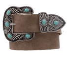 The Stone Embellished Southwestern Faux Leather Belt adds personality and polish to any outfit. Available in black or taupe, this belt features silver hardware adorned with either black or turquoise stone accents for that perfect southwestern flair. Whether you’re cinching a dress or pairing it with denim, it’s an eye-catching accessory that pulls everything together.