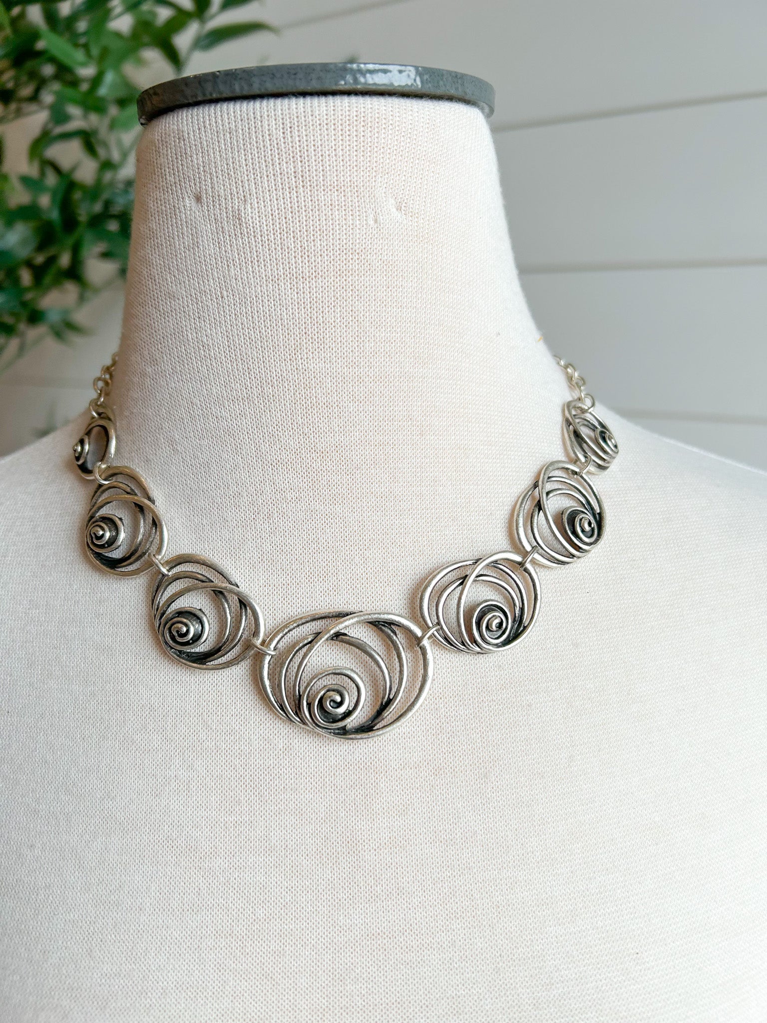 .► Silver Plated Women Adjustable Size Spiral Design Necklace. Special Bohemian Design.. ► Material : Silver Zinc ► | W : 1,15” | L : 19,5” ► Antique Silver Necklace with Adjustable Chain ► Fashion Jewelry gift for Women ► Hypoallergenic ► Lead, Nickel, Cadmium free.