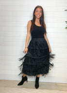 The Solid Tiered Fringe Midi Skirt is pure movement magic. With layers of soft fringe that swish and sway as you walk, this skirt makes every step feel like a statement. Its chic midi length and elastic waistband keep it flattering and comfortable, while the solid color makes it endlessly versatile—perfect for dressing up or adding playful texture to your everyday looks.