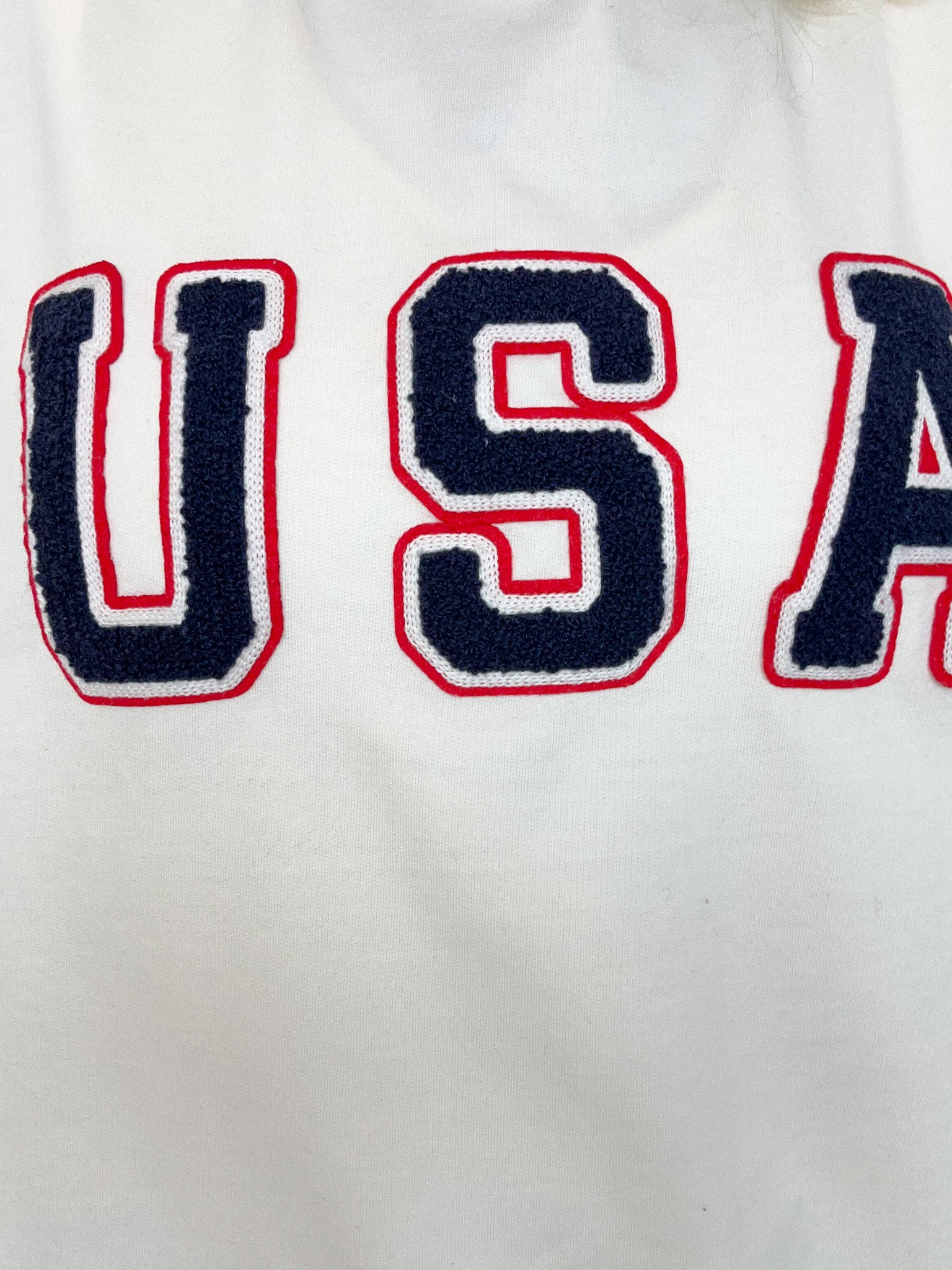 Bold “USA” varsity lettering adds a classic collegiate touch