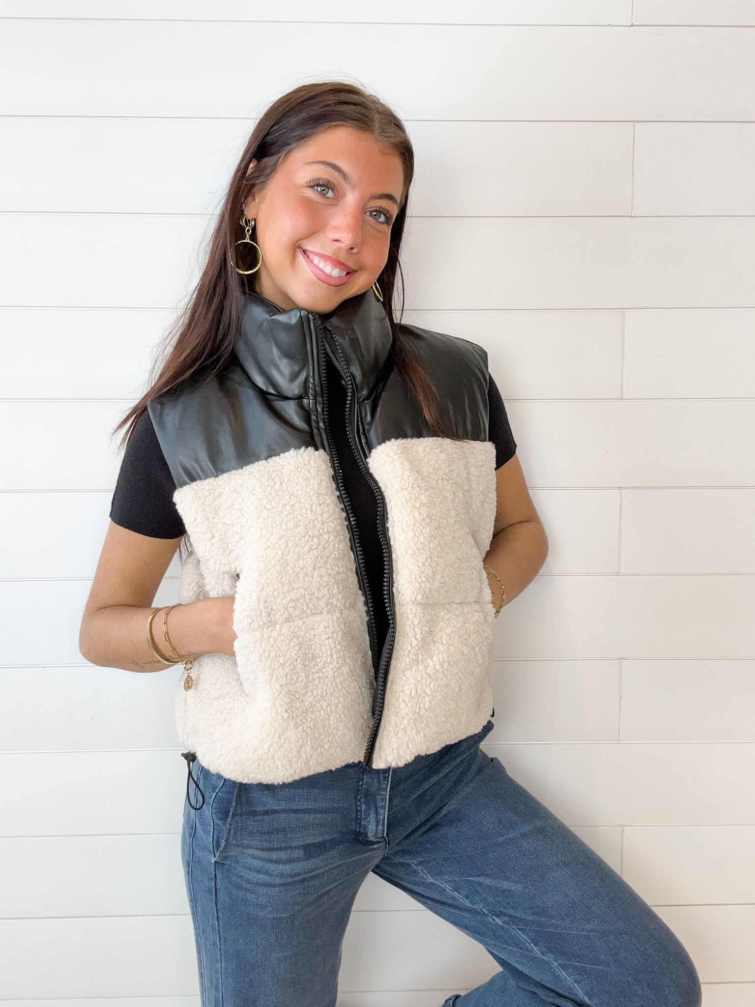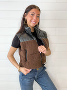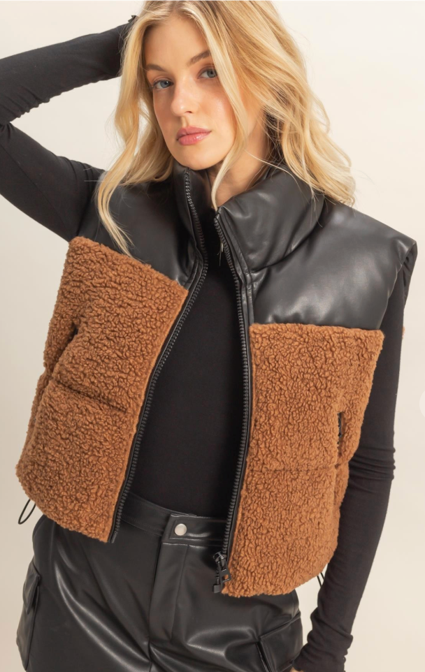Vegan Leather & Sherpa Puffer Vest