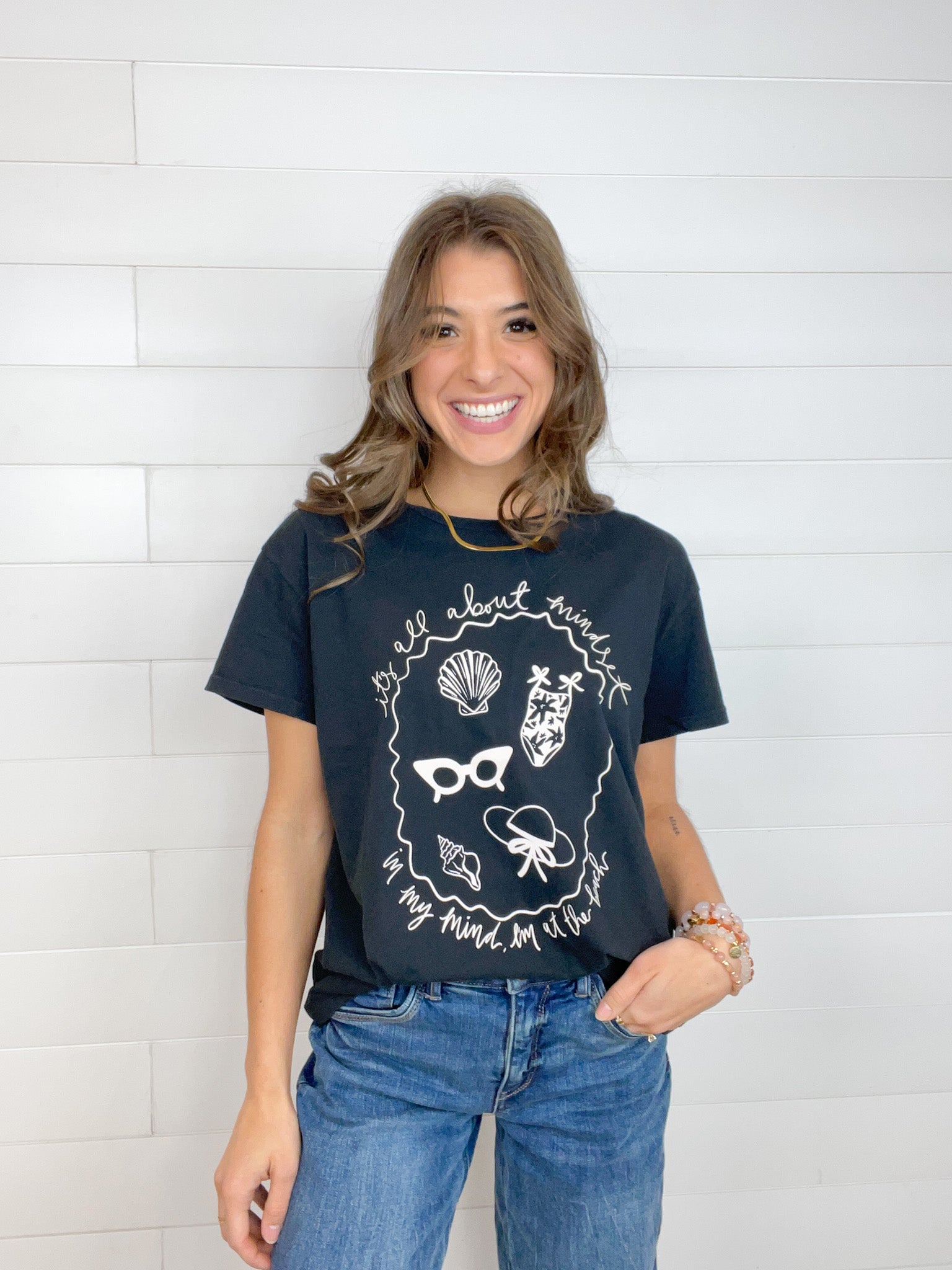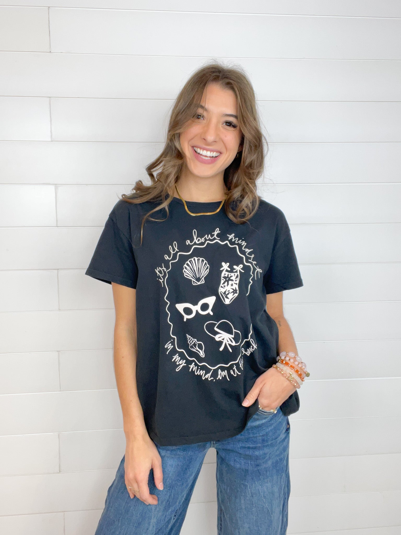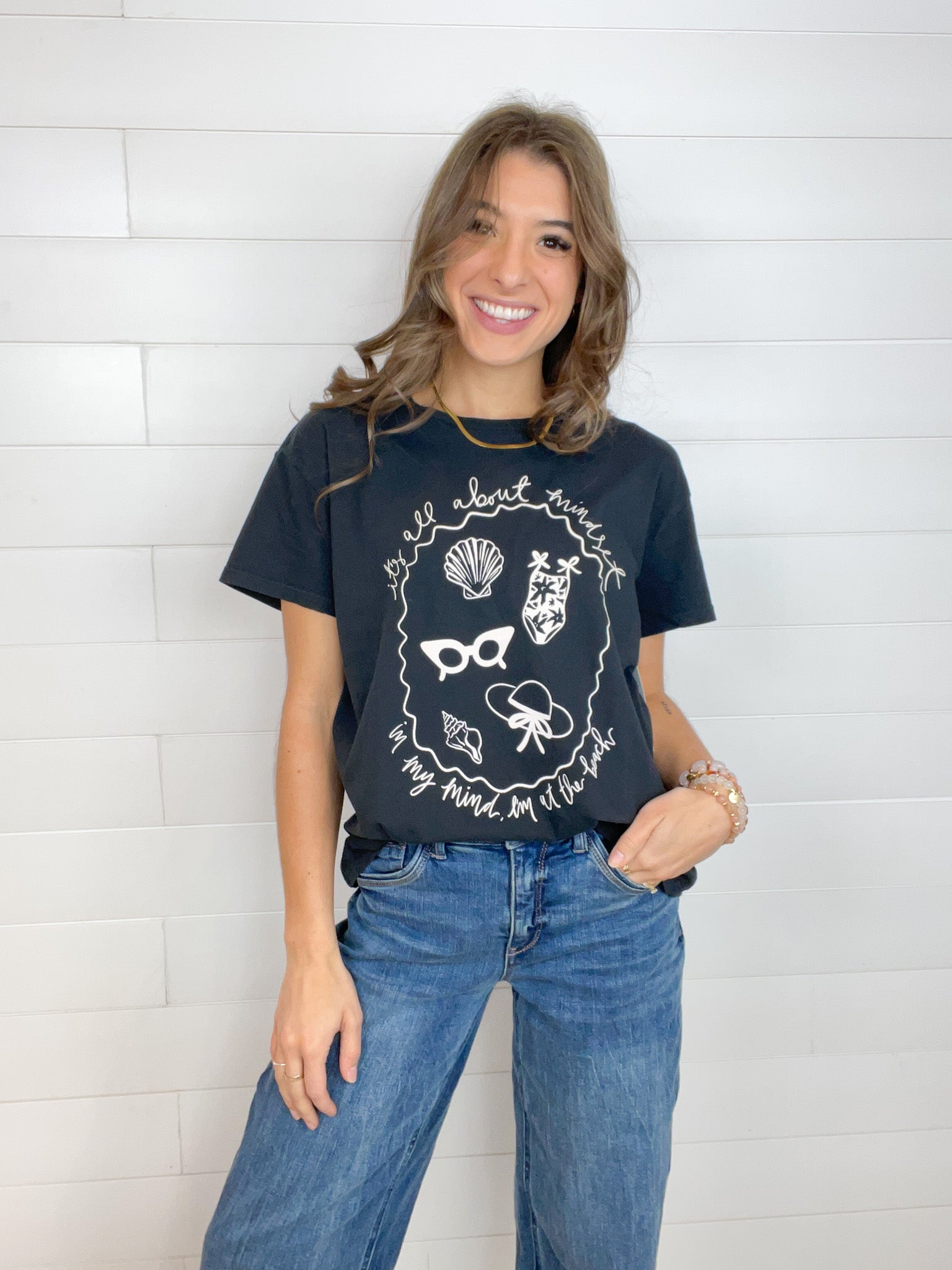 The Mac and Me Mind at the Beach Graphic Tee is the perfect reminder that it’s all about mindset—"In my mind, I'm at the beach." Featuring 100% hand-drawn artwork by Mac, this tee is both fun and trendy. Made from 100% cotton, it offers a soft, lightweight feel and a classic fit that’s true to size. The tee washes beautifully, maintaining its incredible quality, and the fit is flattering for all ages.